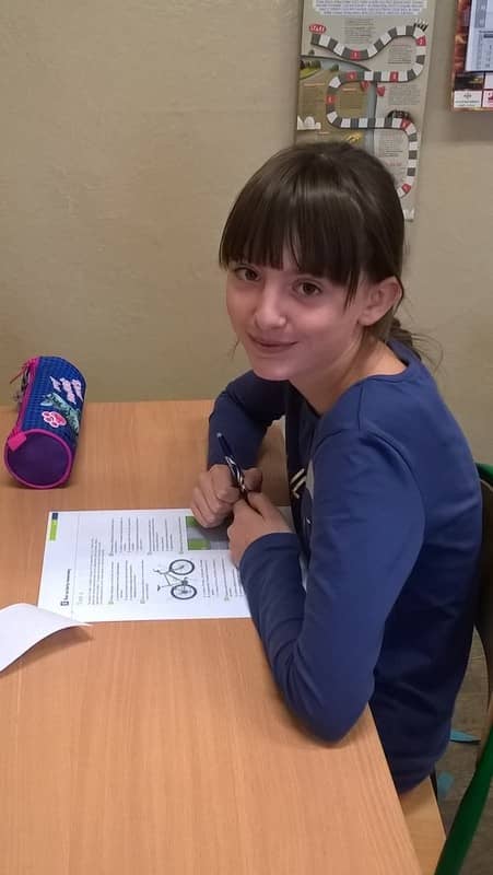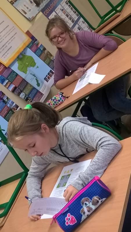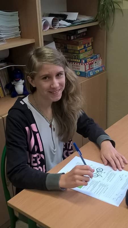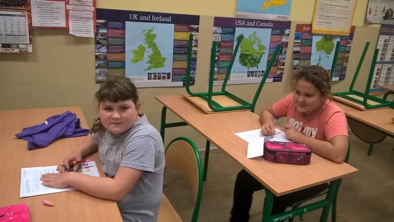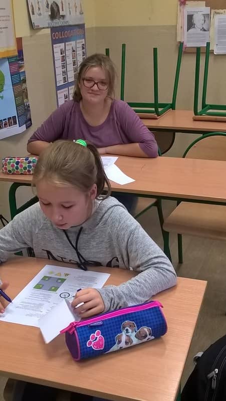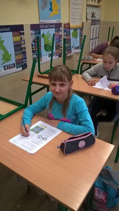 Uczniowie podczas egzaminu na kartę rowerową - część teoretyczna