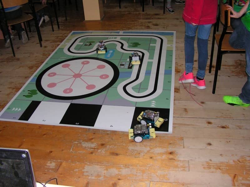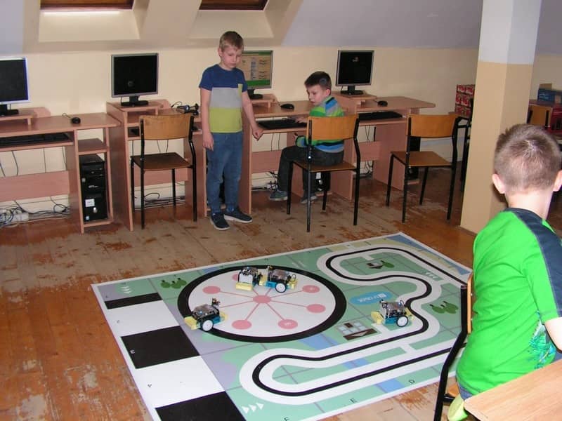 Na zajęciach z programowania uczniowie poznawali, jak zbudowany jest robot, działanie czujników i wskaźników diodowych. Sterowali robotami z klawiatury komputera z wykorzystaniem programu mBlock, umożliwiającym programowanie różnych sterowników zgodnych z Arduino (Uno, Leonardo, Makeblock Orion, mCore i innych).