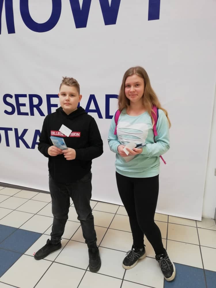 W dniu 15 lutego 2020r. uczniowie klasy siódmej: Dawid, Dominika, Bartosz, Szymon, Zuzia, Marcin wzięli udział w walentynkowej akcji charytatywnej organizowanej przez Fundację Promień Nadziei przeprowadzonej w Auchan CH Krokus. Poza zbiórką finansową klienci sklepu ofiarowywali dary dla Domu Matki i Dziecka w Krakowie.