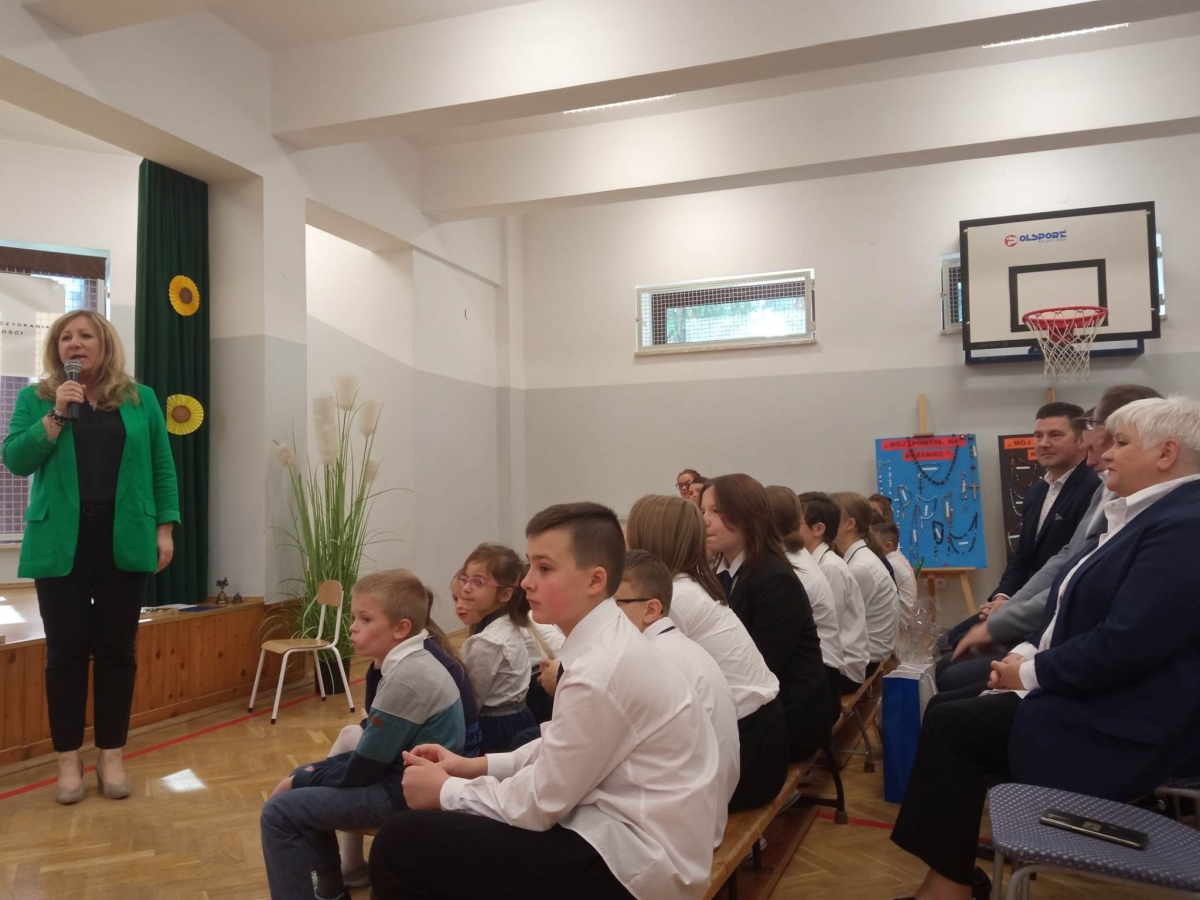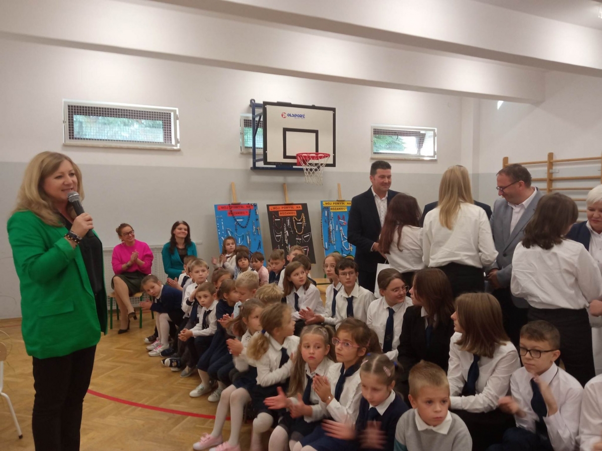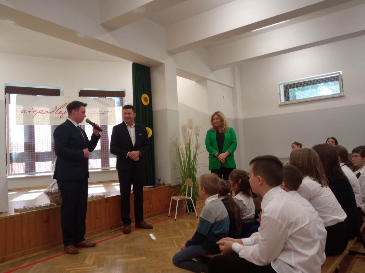 Po części artystycznej Pani Dyrektor wyjaśniła skąd tacy dostojni Goście. Właśnie dzięki zaproszonym Gościom możemy liczyć na rozbudowę naszej szkoły. Wielki udział w tej sprawie miał Pan Wicemarszałek Senatu Marek Pęk, dzięki któremu dojdzie do realizacji naszego marzenia jakim jest sala sportowa i oddziały przedszkolne. Dzięki wsparciu Pana Senatora może już za rok spotkamy się w nowej części szkolnej.