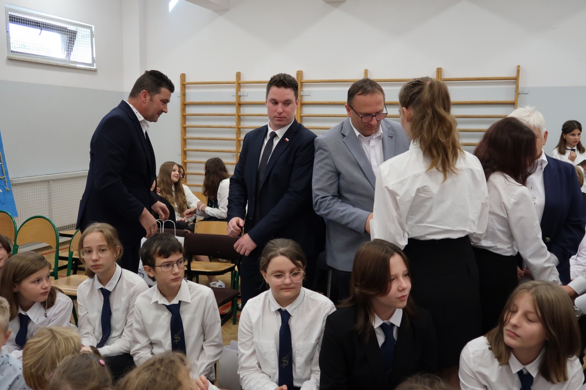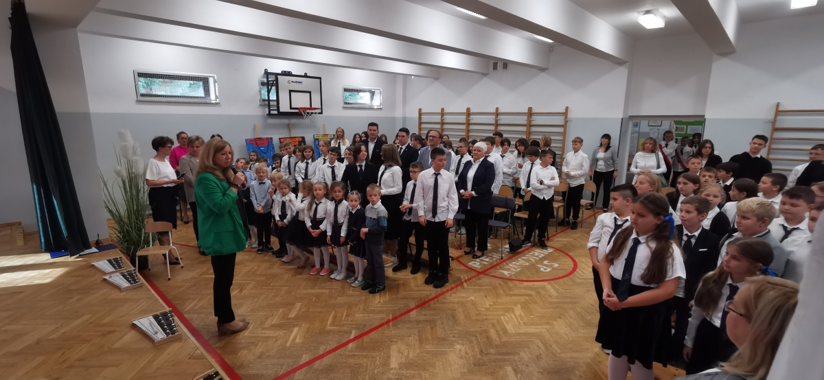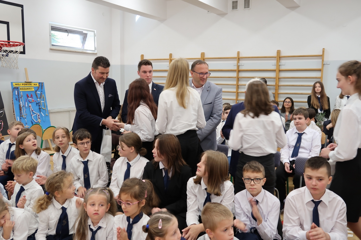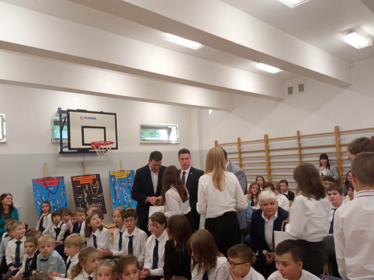 Po części artystycznej Pani Dyrektor wyjaśniła skąd tacy dostojni Goście. Właśnie dzięki zaproszonym Gościom możemy liczyć na rozbudowę naszej szkoły. Wielki udział w tej sprawie miał Pan Wicemarszałek Senatu Marek Pęk, dzięki któremu dojdzie do realizacji naszego marzenia jakim jest sala sportowa i oddziały przedszkolne. Dzięki wsparciu Pana Senatora może już za rok spotkamy się w nowej części szkolnej.
