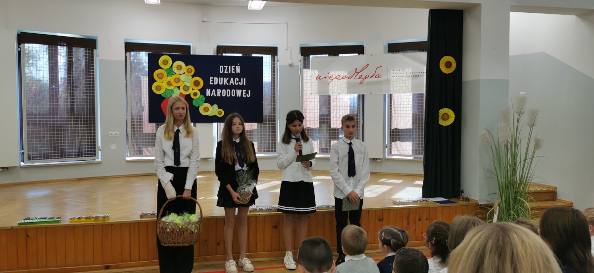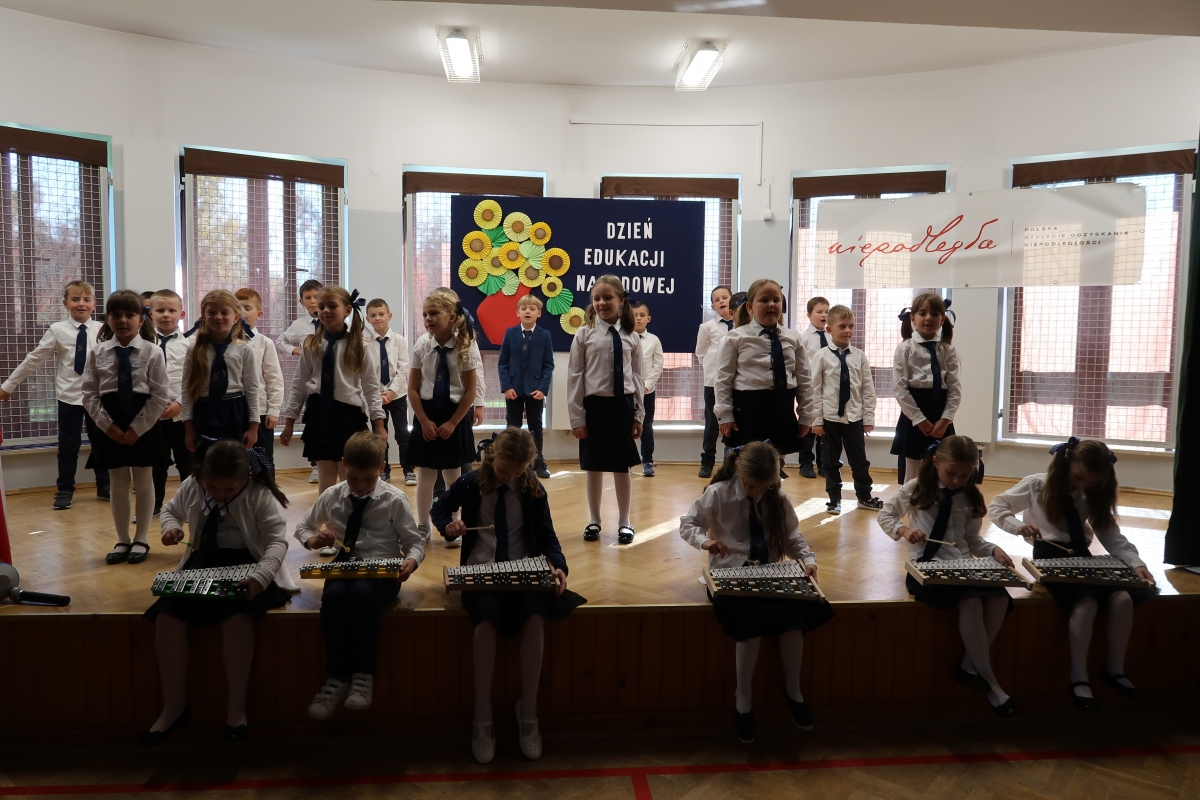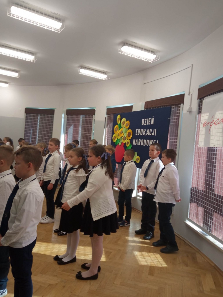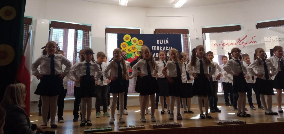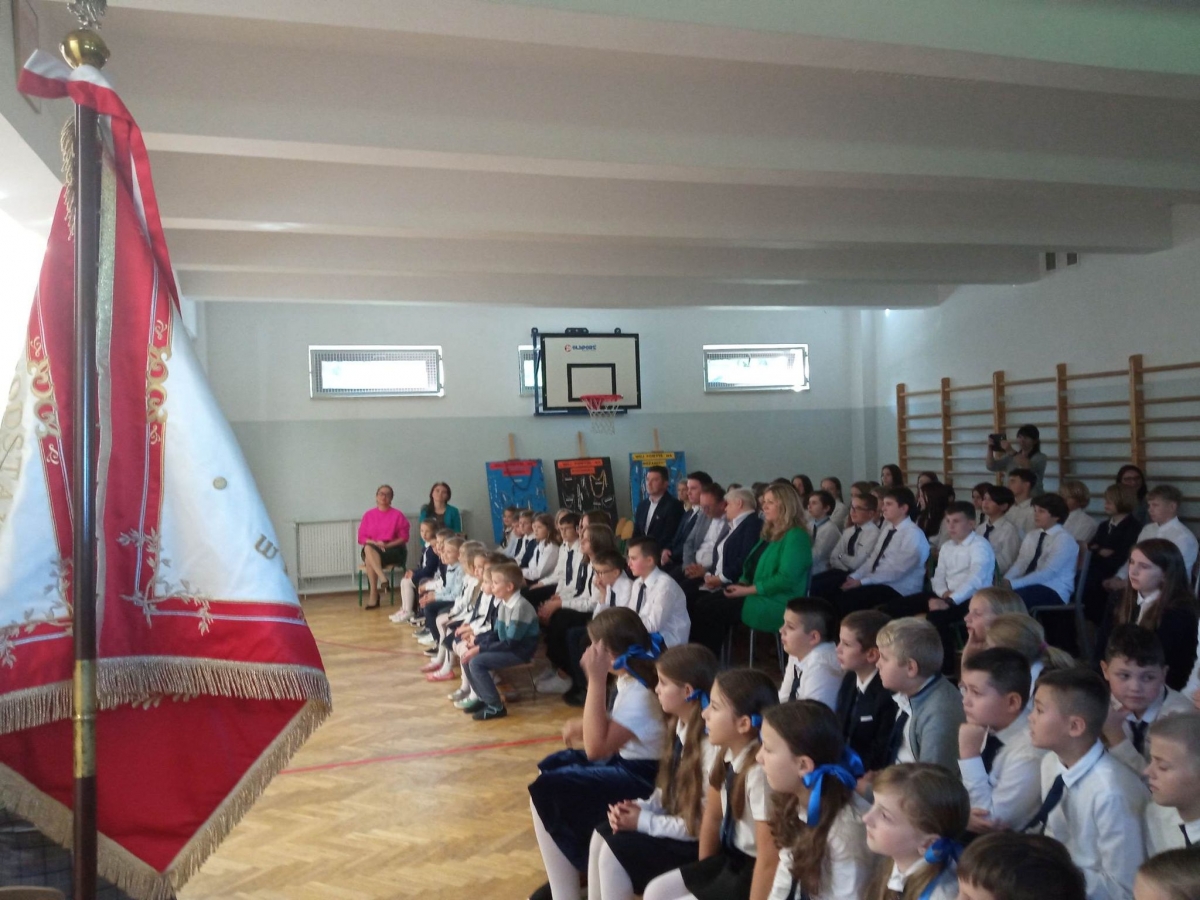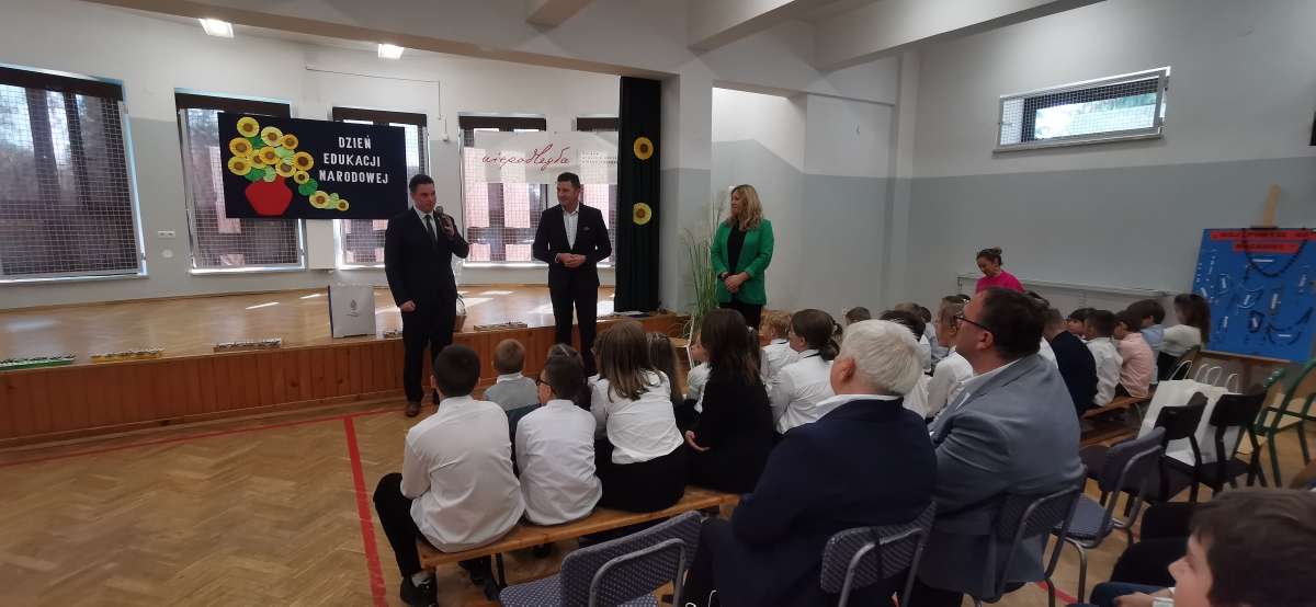 W tym roku nieco wcześniej przygotowaliśmy w naszej szkole Akademię z okazji Dnia Edukacji Narodowej. Jako, że lubimy świętować z rozmachem, nie brakło podczas naszej uroczystości dostojnych Gości. Pięknej Akademii przygotowanej przez klasę I i II oraz Panie Annę Lelek i Elżbietę Nęcką przyglądał się Pan Michał Burda Asystent Wicemarszałka Senatu Pana Marka Pęka, Pan Wójt Paweł Miś, Pan Radny Marcin Mazur i Pani Sołtys Zofia Pyla. Cała społeczność szkolna odśpiewała Hymn, następnie uczniowie zaprezentowali się w tańcu, piosence i żartobliwych scenkach z życia szkoły.