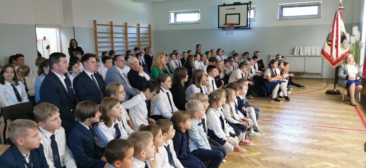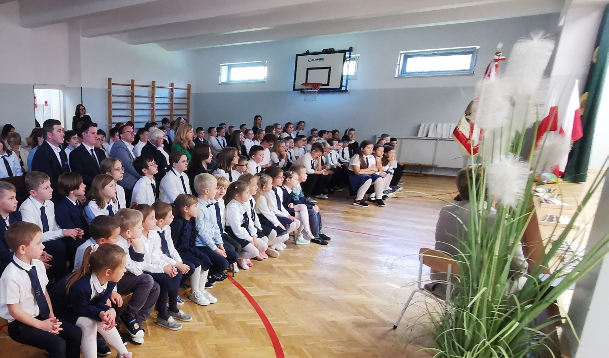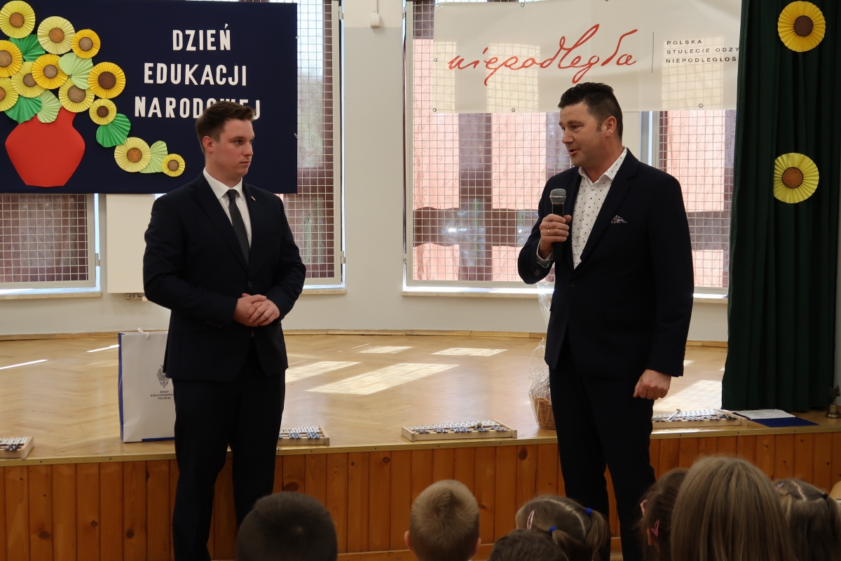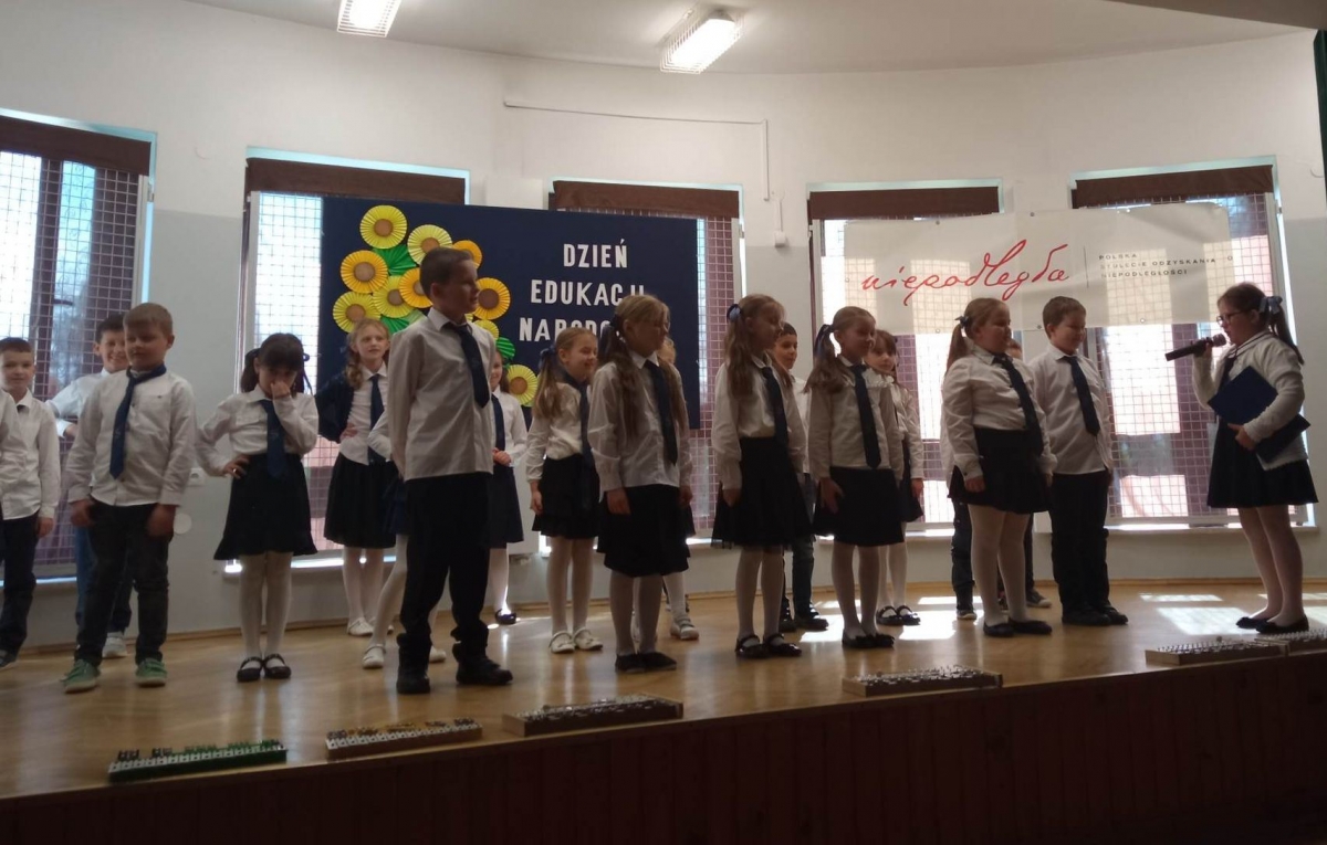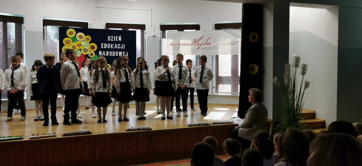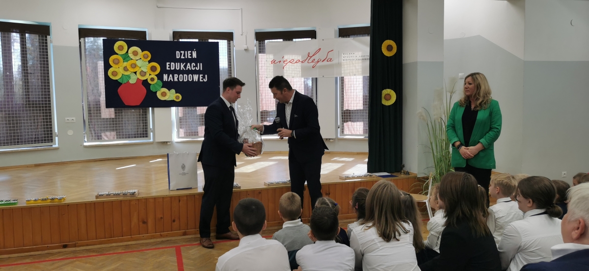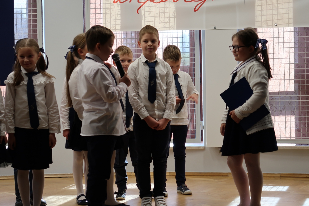 W tym roku nieco wcześniej przygotowaliśmy w naszej szkole Akademię z okazji Dnia Edukacji Narodowej. Jako, że lubimy świętować z rozmachem, nie brakło podczas naszej uroczystości dostojnych Gości. Pięknej Akademii przygotowanej przez klasę I i II oraz Panie Annę Lelek i Elżbietę Nęcką przyglądał się Pan Michał Burda Asystent Wicemarszałka Senatu Pana Marka Pęka, Pan Wójt Paweł Miś, Pan Radny Marcin Mazur i Pani Sołtys Zofia Pyla. Cała społeczność szkolna odśpiewała Hymn, następnie uczniowie zaprezentowali się w tańcu, piosence i żartobliwych scenkach z życia szkoły.