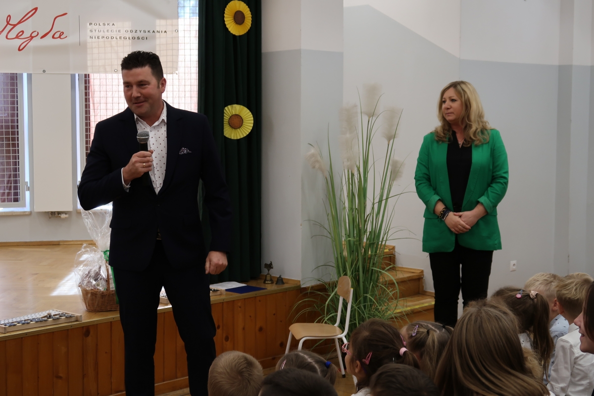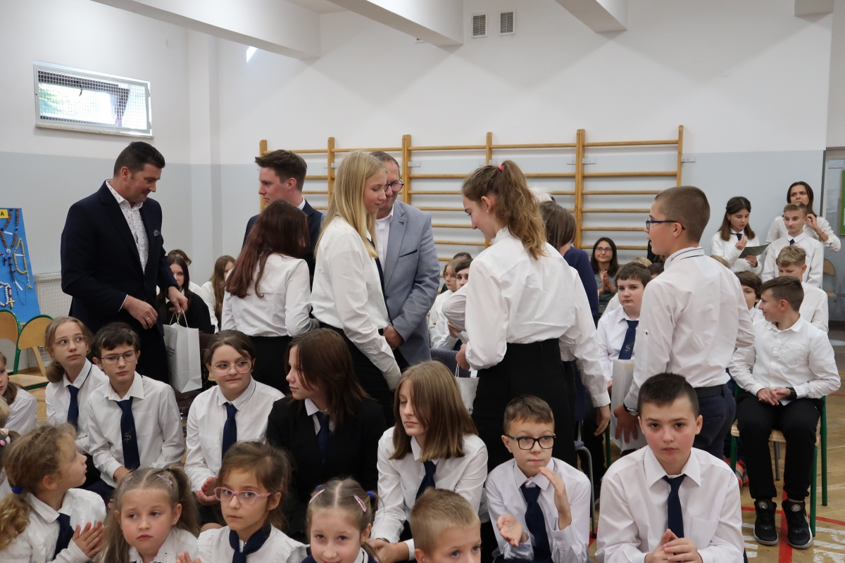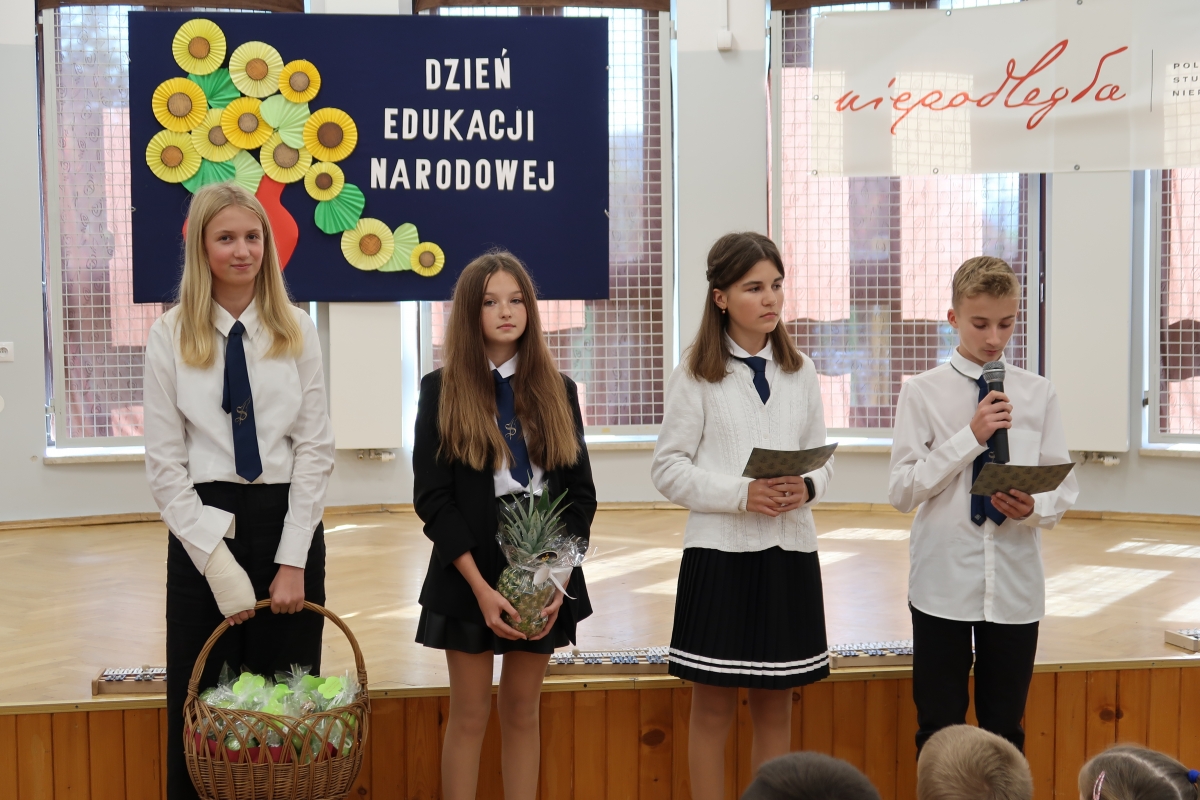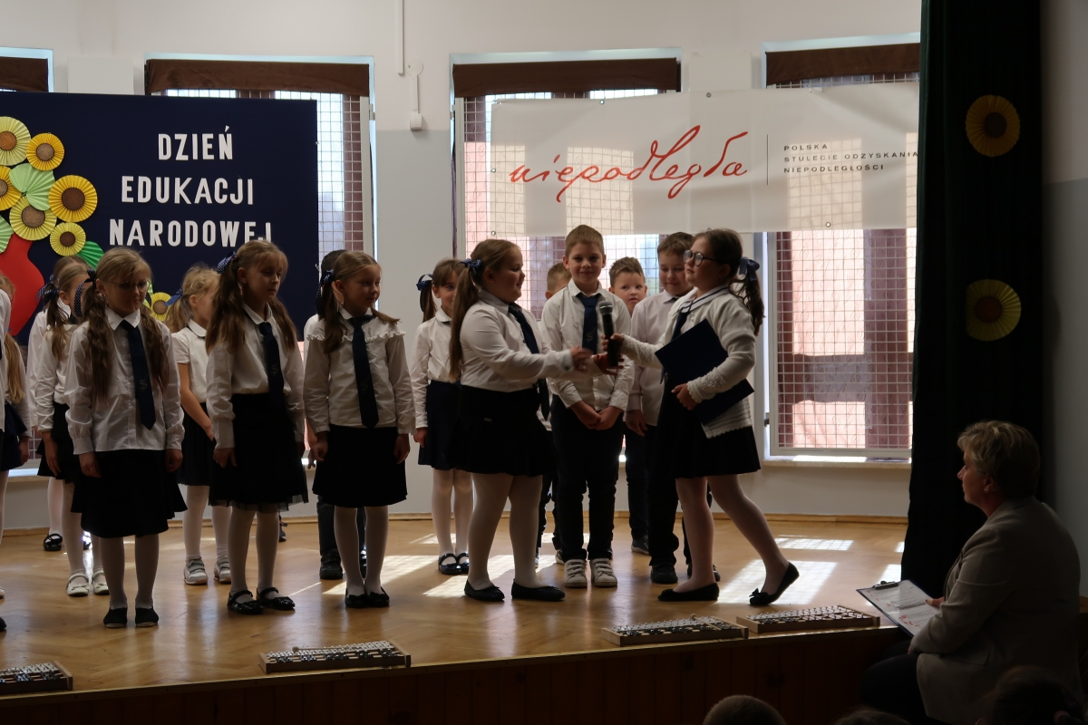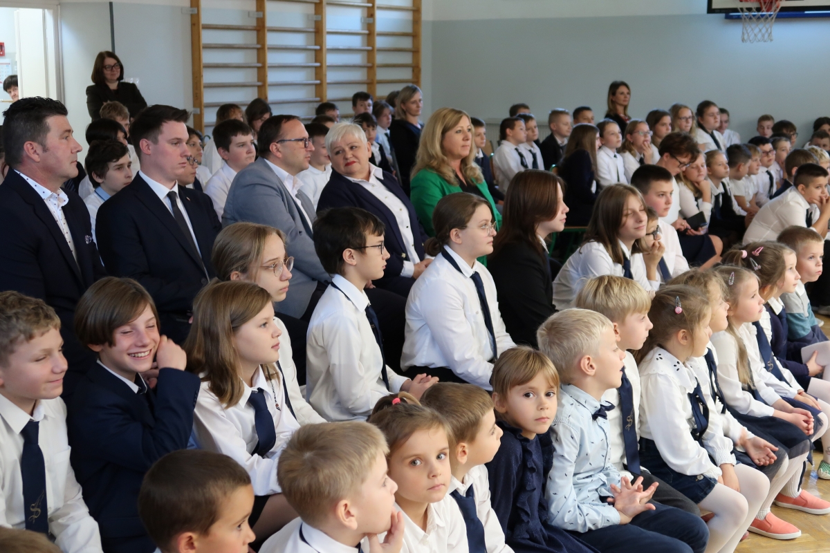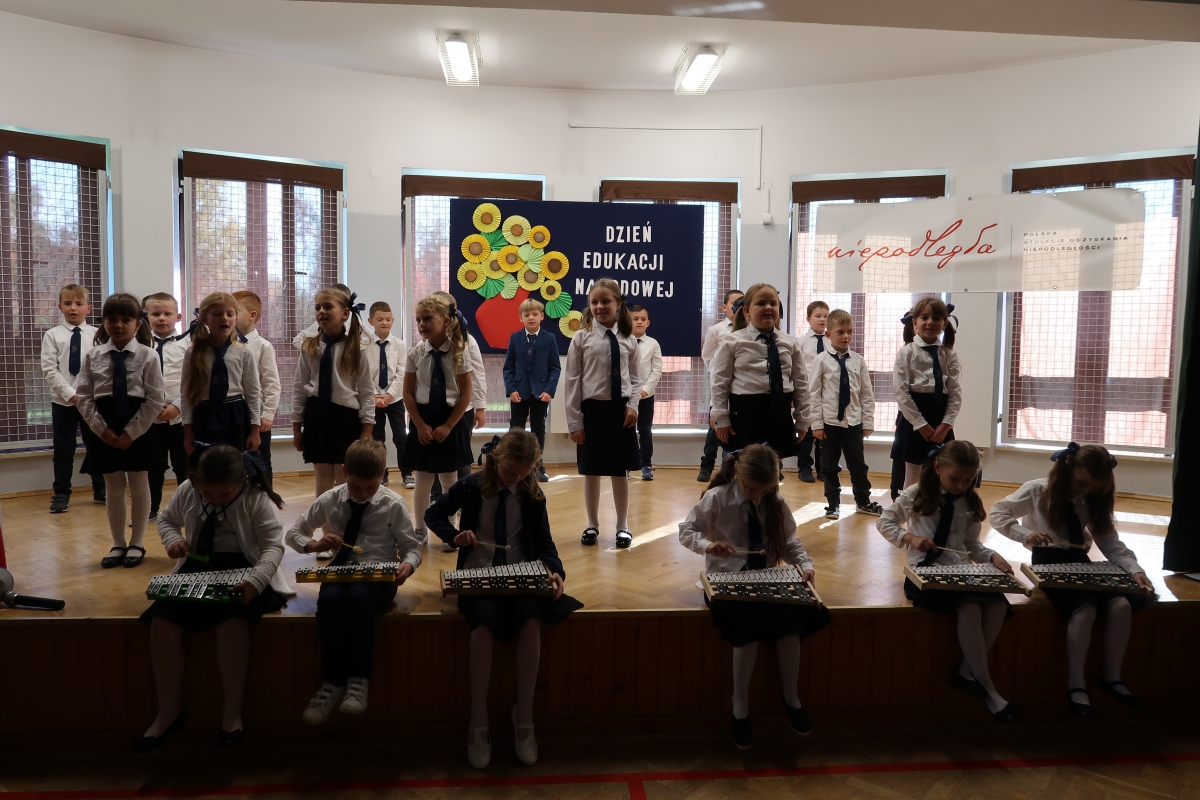 W tym roku nieco wcześniej przygotowaliśmy w naszej szkole Akademię z okazji Dnia Edukacji Narodowej. Jako, że lubimy świętować z rozmachem, nie brakło podczas naszej uroczystości dostojnych Gości. Pięknej Akademii przygotowanej przez klasę I i II oraz Panie Annę Lelek i Elżbietę Nęcką przyglądał się Pan Michał Burda Asystent Wicemarszałka Senatu Pana Marka Pęka, Pan Wójt Paweł Miś, Pan Radny Marcin Mazur i Pani Sołtys Zofia Pyla. Cała społeczność szkolna odśpiewała Hymn, następnie uczniowie zaprezentowali się w tańcu, piosence i żartobliwych scenkach z życia szkoły.