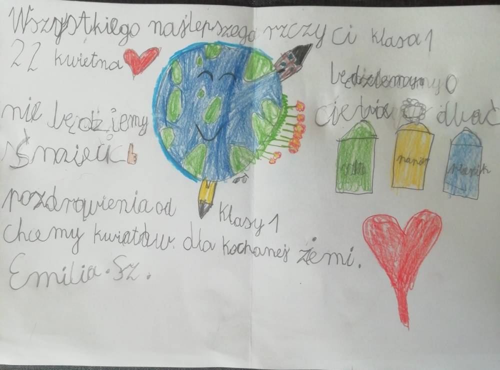 22 kwietnia obchodzimy Światowy Dzień Ziemi. Nasza szkoła aktywnie przyłączyła się do tej akcji. Uczniowie wykonali plakaty o tematyce ekologicznej. Przedstawili w nich, jak sami dbają o naszą najbliższą okolicę. Powstały również gry planszowe z wykorzystaniem surowców wtórnych.