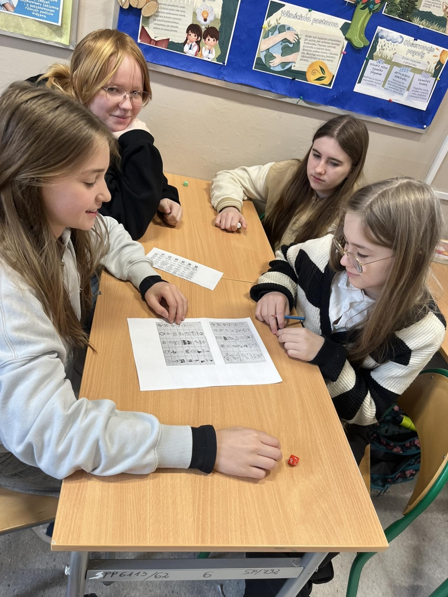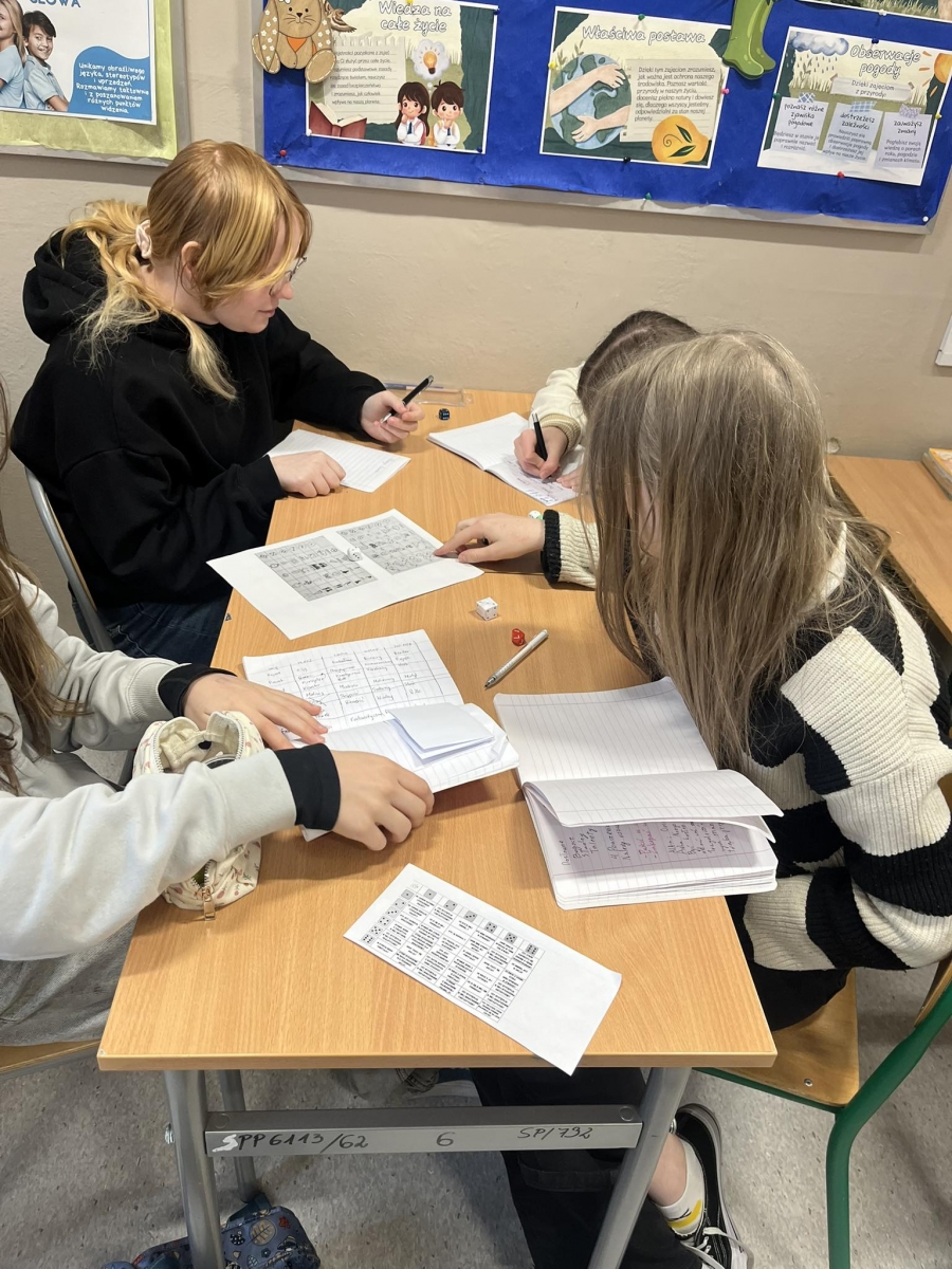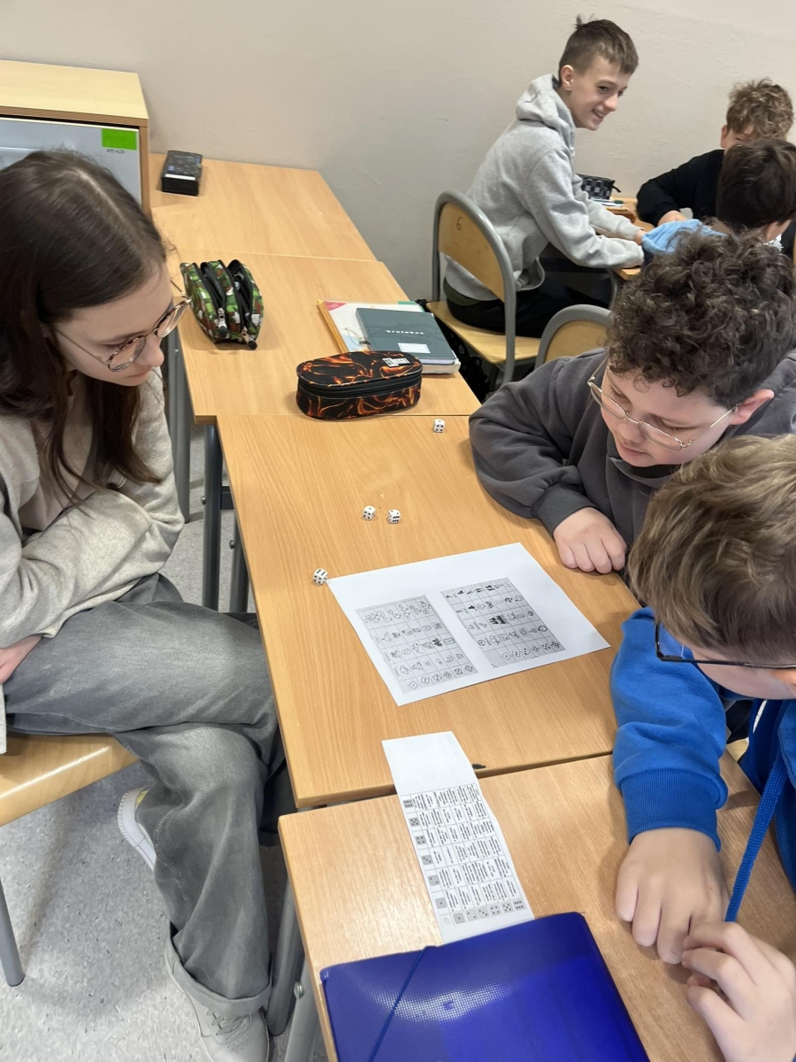 cyfrze z kostki, a każda kolumna to inna kategoria. Uczniowie rzucali kostką i tworzyli