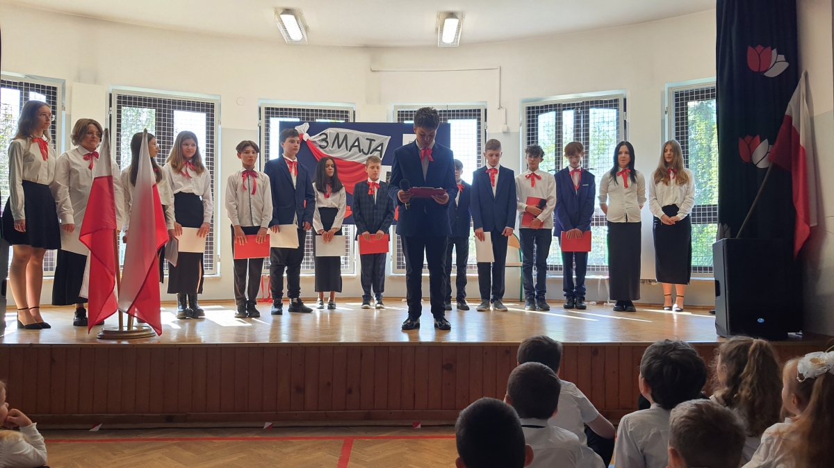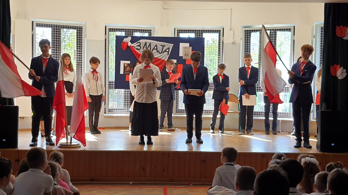 W corocznym kalendarzu uroczystości w naszej szkole wpisana jest uroczysta akademia z okazji Rocznicy uchwalenia Konstytucji 3 Maja.