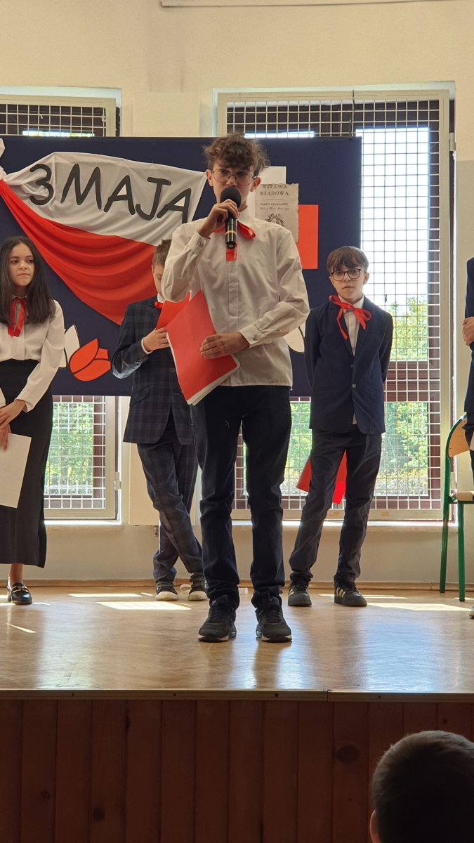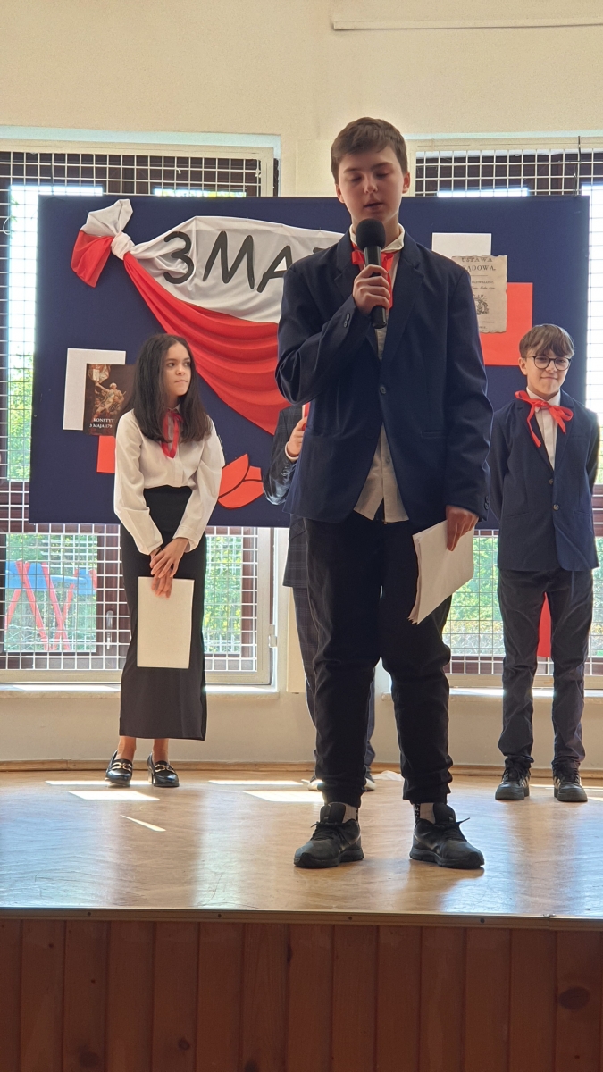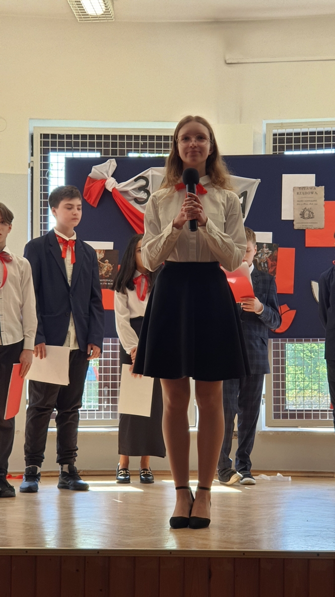 W czasie występu mogliśmy posłuchać krótkiego zarysu historycznego, wierszy mówiących o wydarzeniach z trudnej historii naszego kraju, a także utworów o miłości do Ojczyzny i o Konstytucji. Po tym spotkaniu uczniowie, zarówno ci najmłodsi, jak i najstarsi, dowiedzieli się, jak ważne było uchwalenie Konstytucji 3 Maja oraz jakie to miało znaczenia dla następnych pokoleń.