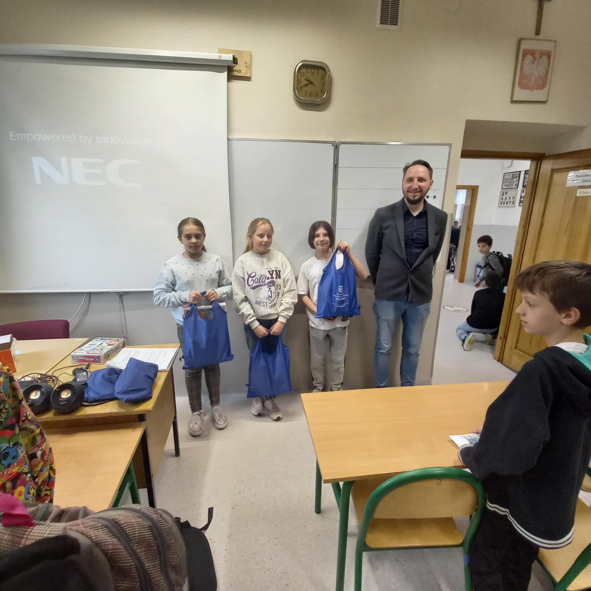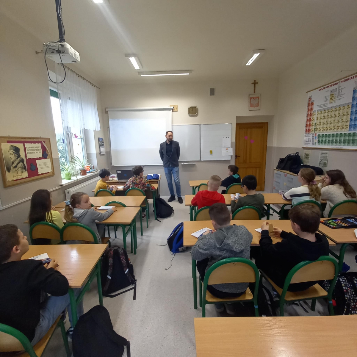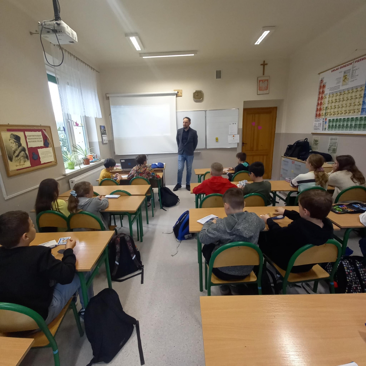 We wtorek w klasie IV, która realizuje program "Aktywni Błękitni - szkoła przyjazna wodzie", gościliśmy Pana Bartosza Jastrzębskiego pracownika Wód Polskich.