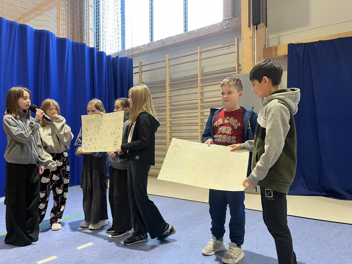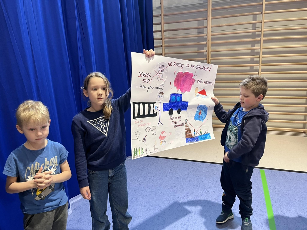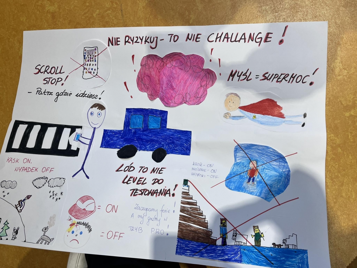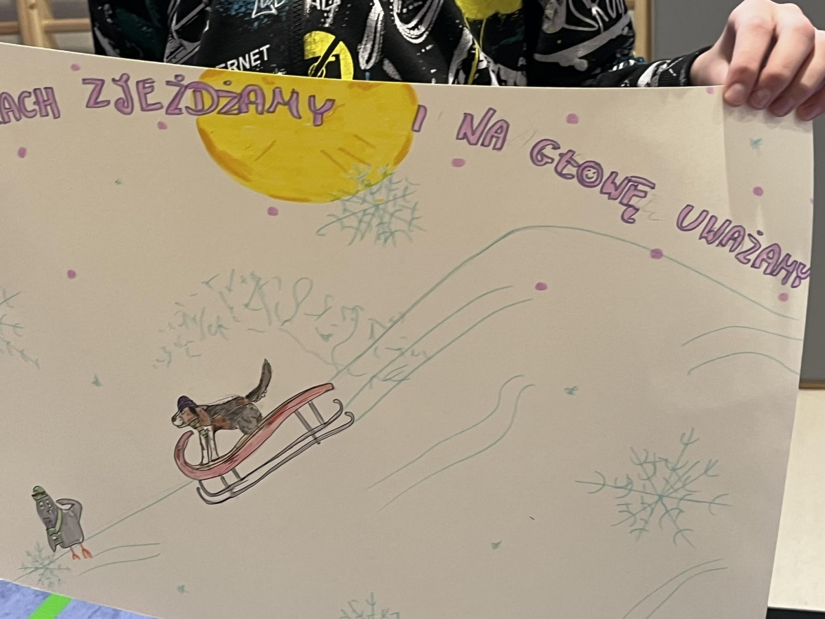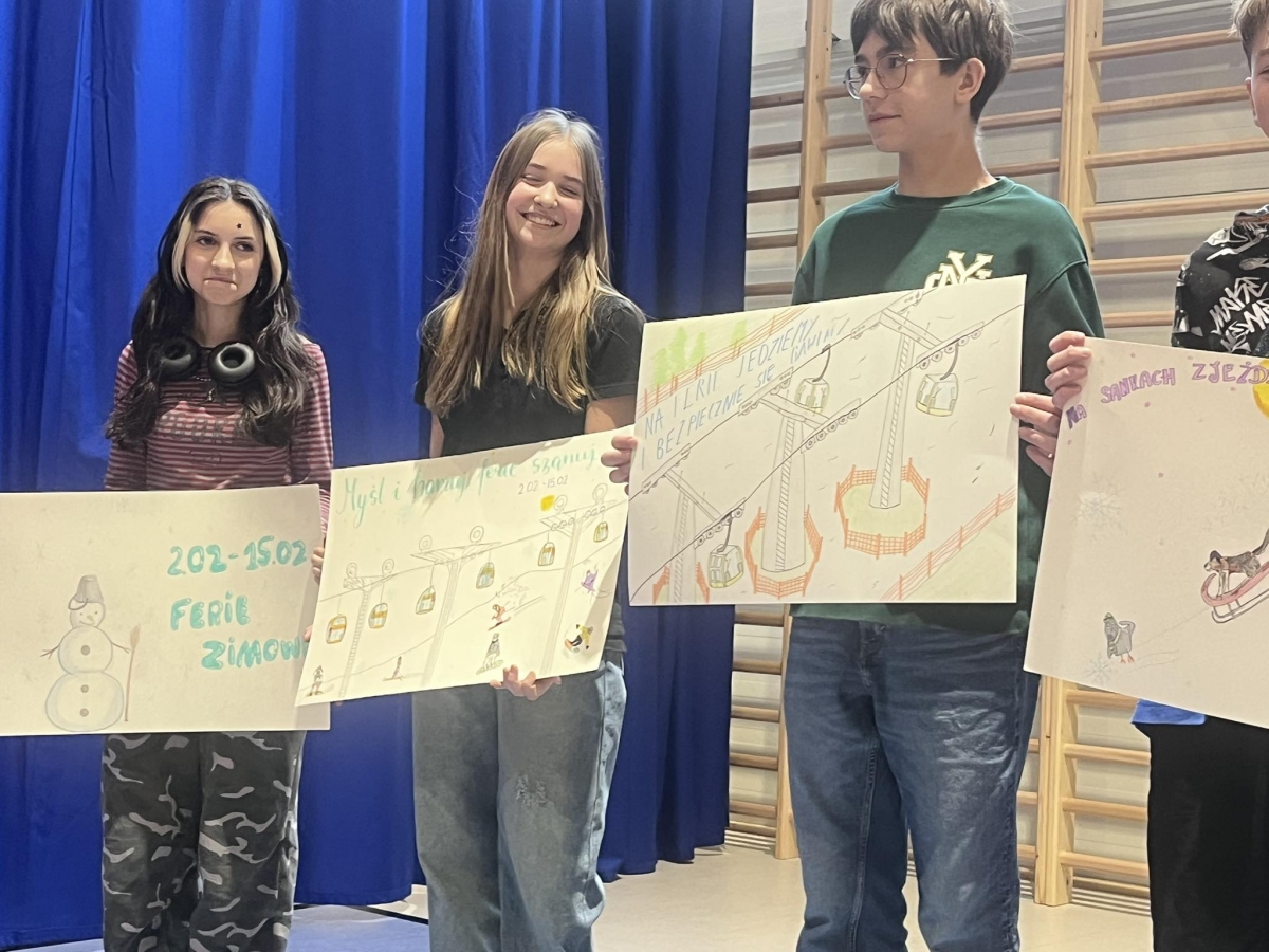 Ferie zimowe to czas odpoczynku od nauki i okres zabaw. W czasie apelu przypomniane były zasady bezpiecznego zachowania się podczas zabaw zimowych. Uczniowie oglądnęli filmy edukacyjne, a także omawiali najważniejsze zasady bezpieczeństwa zamieszczone na plakatach.
