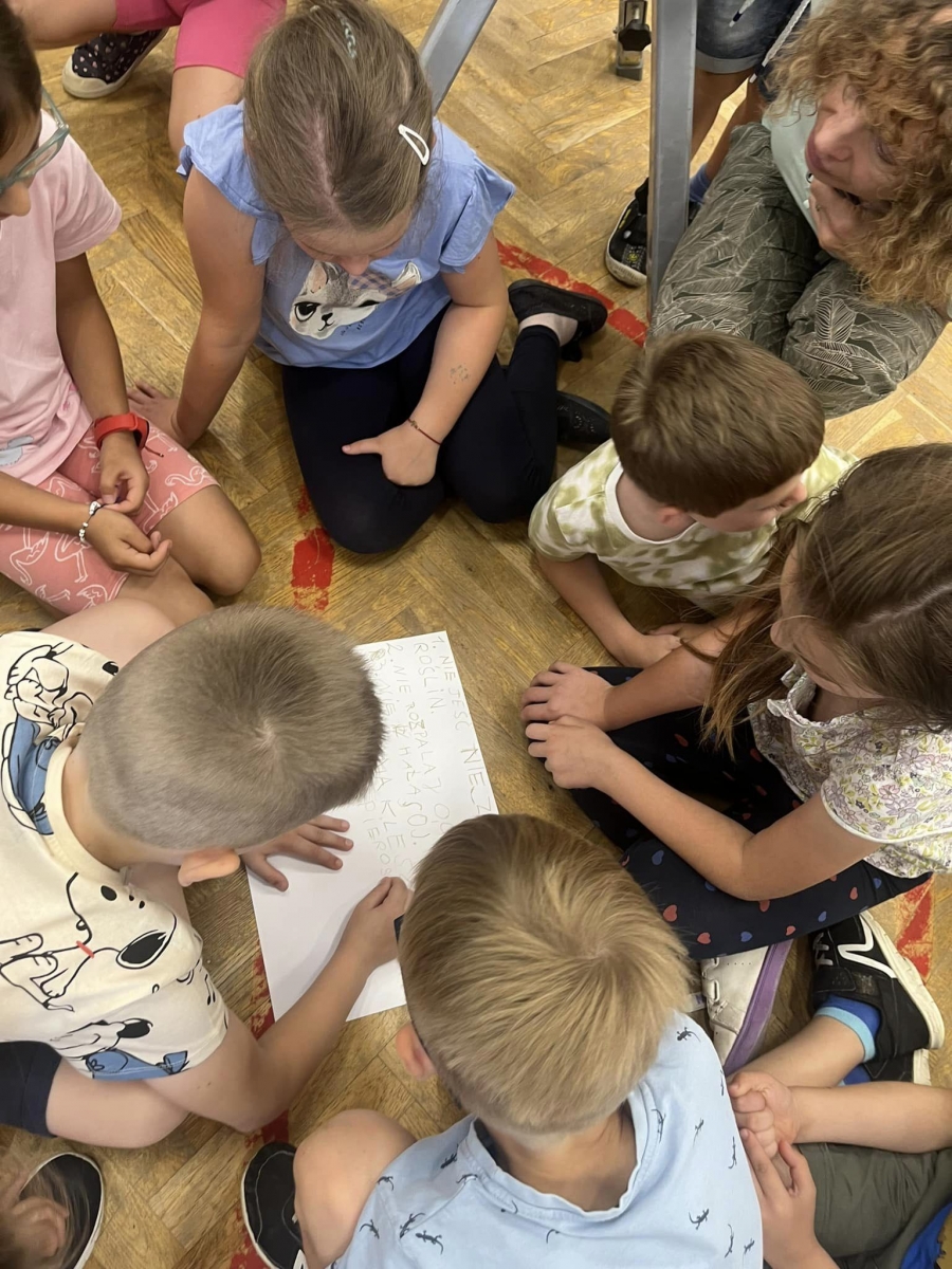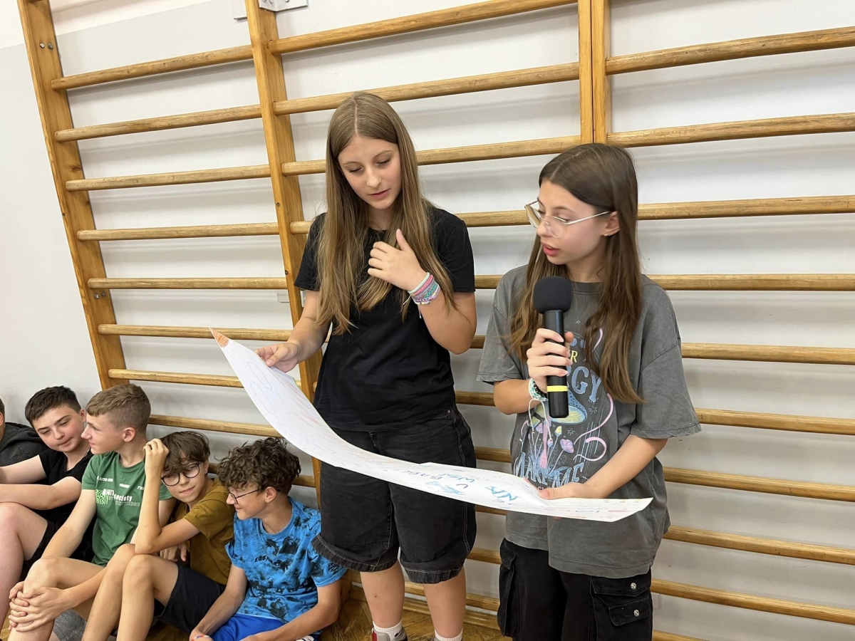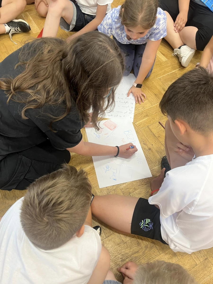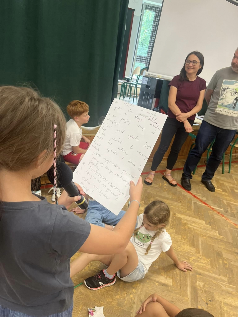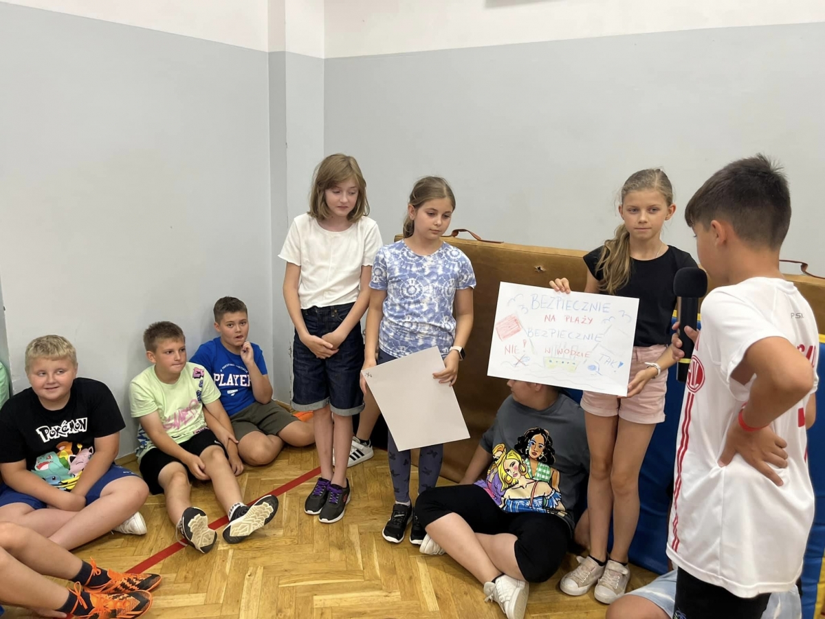 W kolej części apelu uczniowie aktywnie opracowywali zasady bezpieczeństwa w czasie wakacji spędzanych w różnych miejscach: w górach, na wsi, w kraju i za granicą. W czasie pracy grupowej wykorzystywano rutyny, gdyż należymy do niewielu placówek, które stosują rutyny myślenia krytycznego i możemy się poszczycić przynależnością do Szkół Uczących Myślenia.