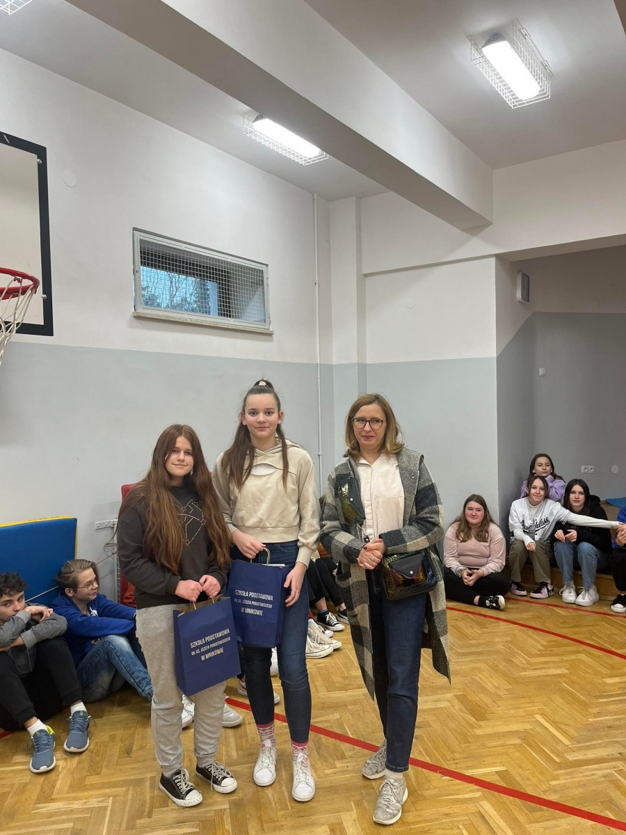 Opiekun konkursu gminnego Pani Agata Tabor wręczyła też nagrody Olwii Kolasie i Klaudii Pac, które za swoje „obrazy pieśnią malowane” zajęły 1. i 2. miejsce.