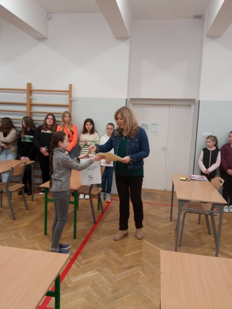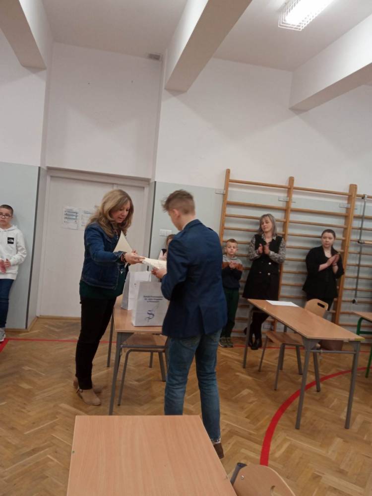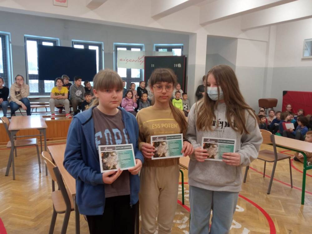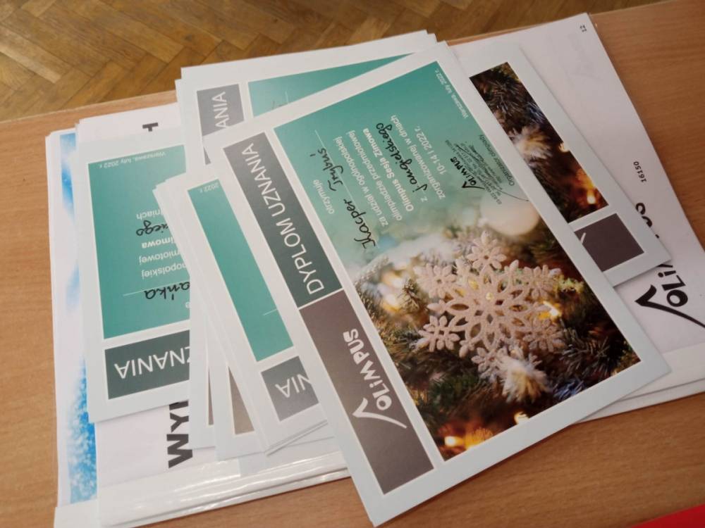 Pani Anna Gilewska wręczyła dyplomy dla uczestników edycji zimowej KONKURSU OLIMPUSEK I OLIMPUS dla uczniów klas młodszych i starszych.