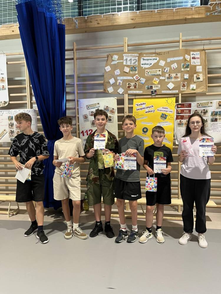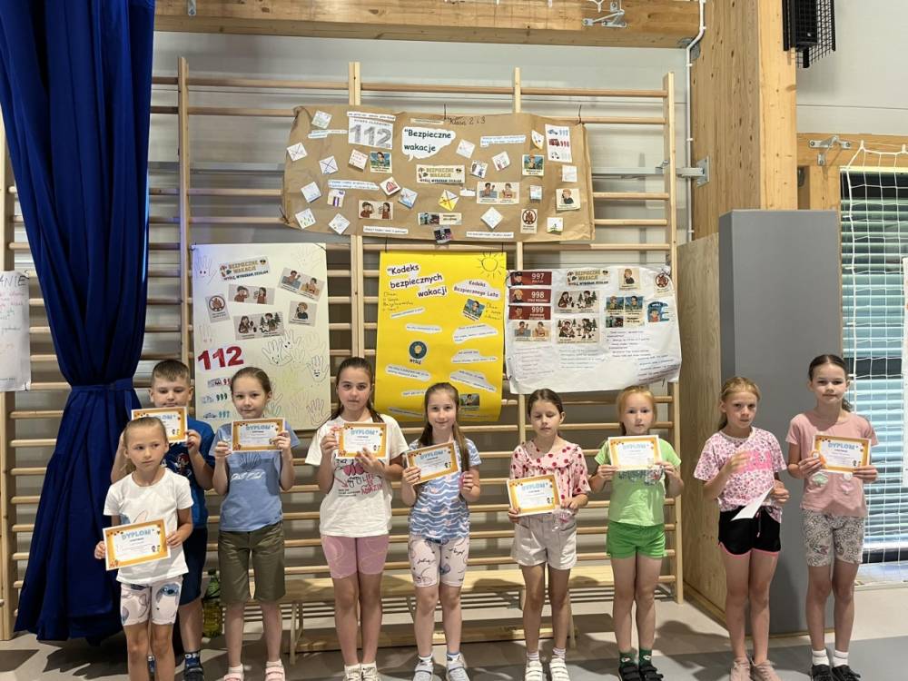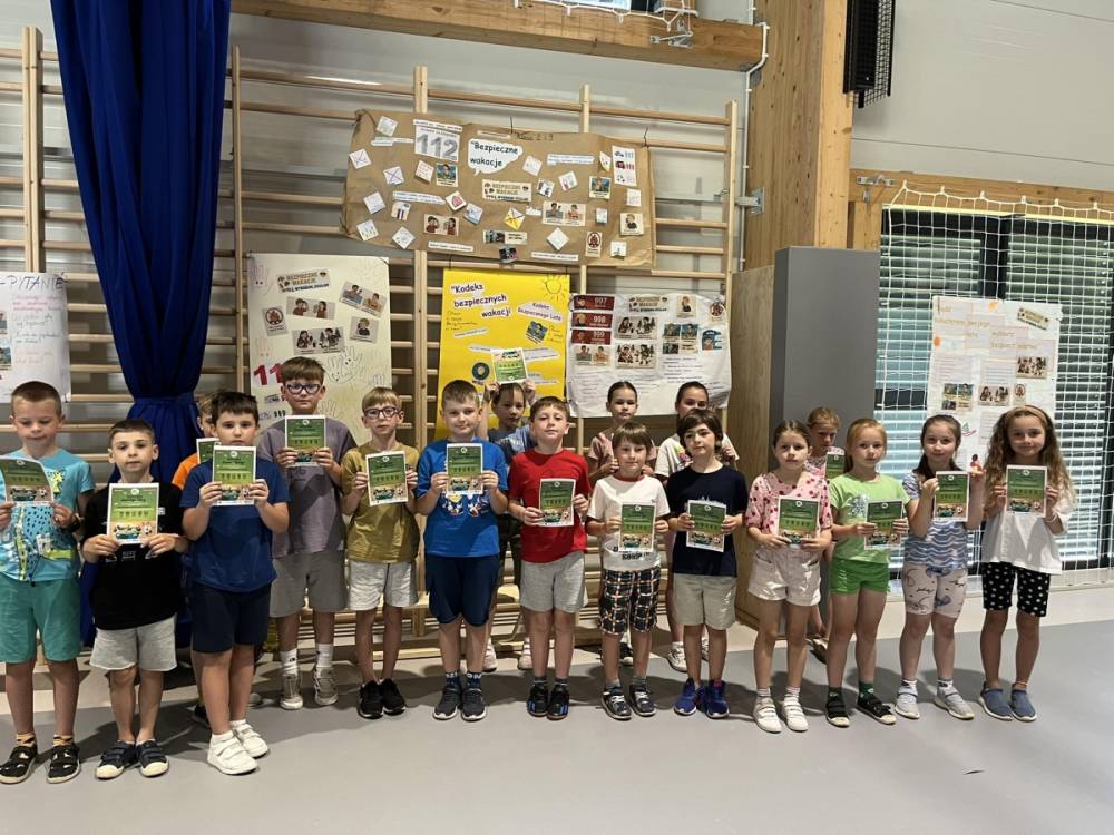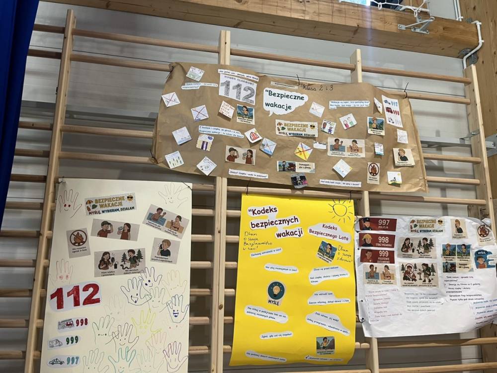 W czwartkowy dzień uczniowie w czasie spotkania z wychowawcą uczniowie aktywnie opracowywali zasady bezpieczeństwa w czasie wakacji spędzanych w różnych miejscach: w górach, na wsi, w kraju i przy komputerze. Tak oto powstał Kodeks Bezpiecznego Lata pod hasłem "Bezpieczne Rutyny na Wakacje!". Efekty działań uczniów można było podziwiać na plakatach, które stanowiły dekorację sali w czasie apelu.