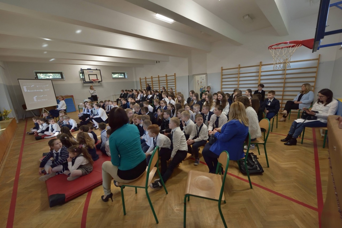 W marcu gospodarzami były Panie Dorota Koza i Barbara Maciążek. W czasie apelu Pani Dorotka podsumowała akcje, jakie były organizowane w naszej szkole w ciągu ostatniego miesiąca: Dzień Kobiet, Dzień Liczby Pi, Pierwszy Dzień Wiosny, Światowy Dzień Wody, Konkursy Świetlik i Kangur, a także Kiermasz Wielkanocny.
