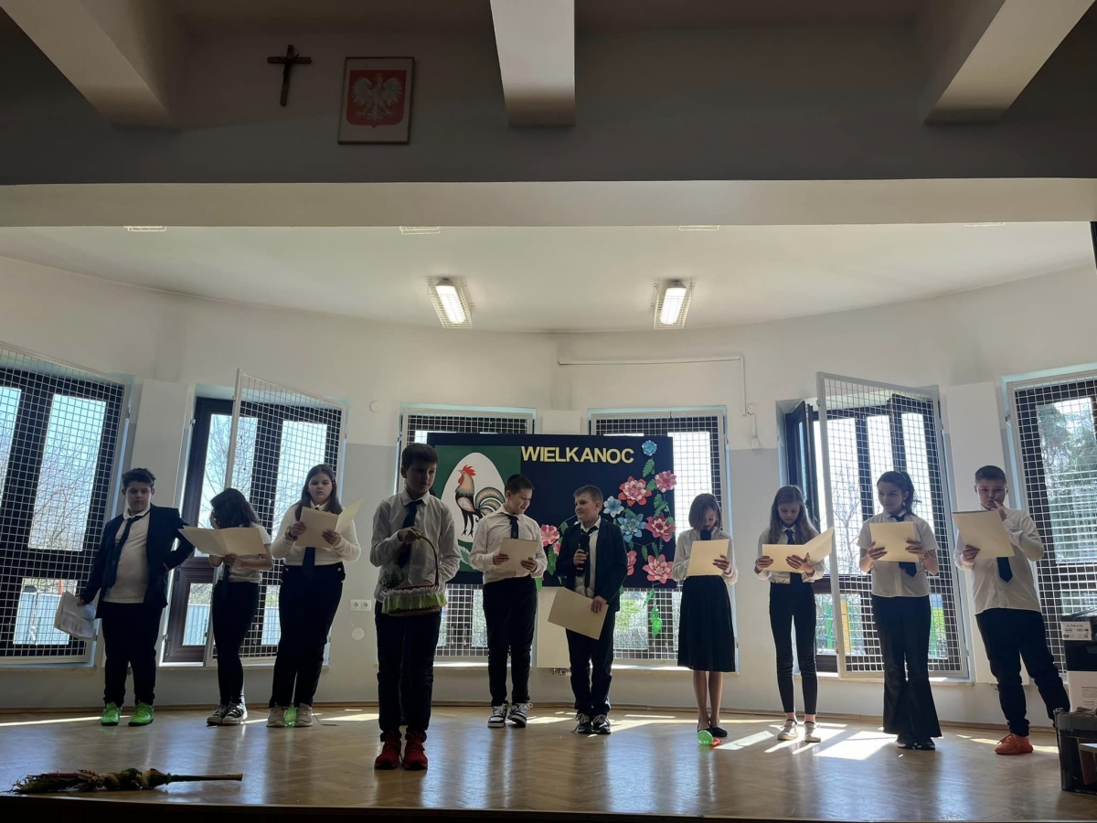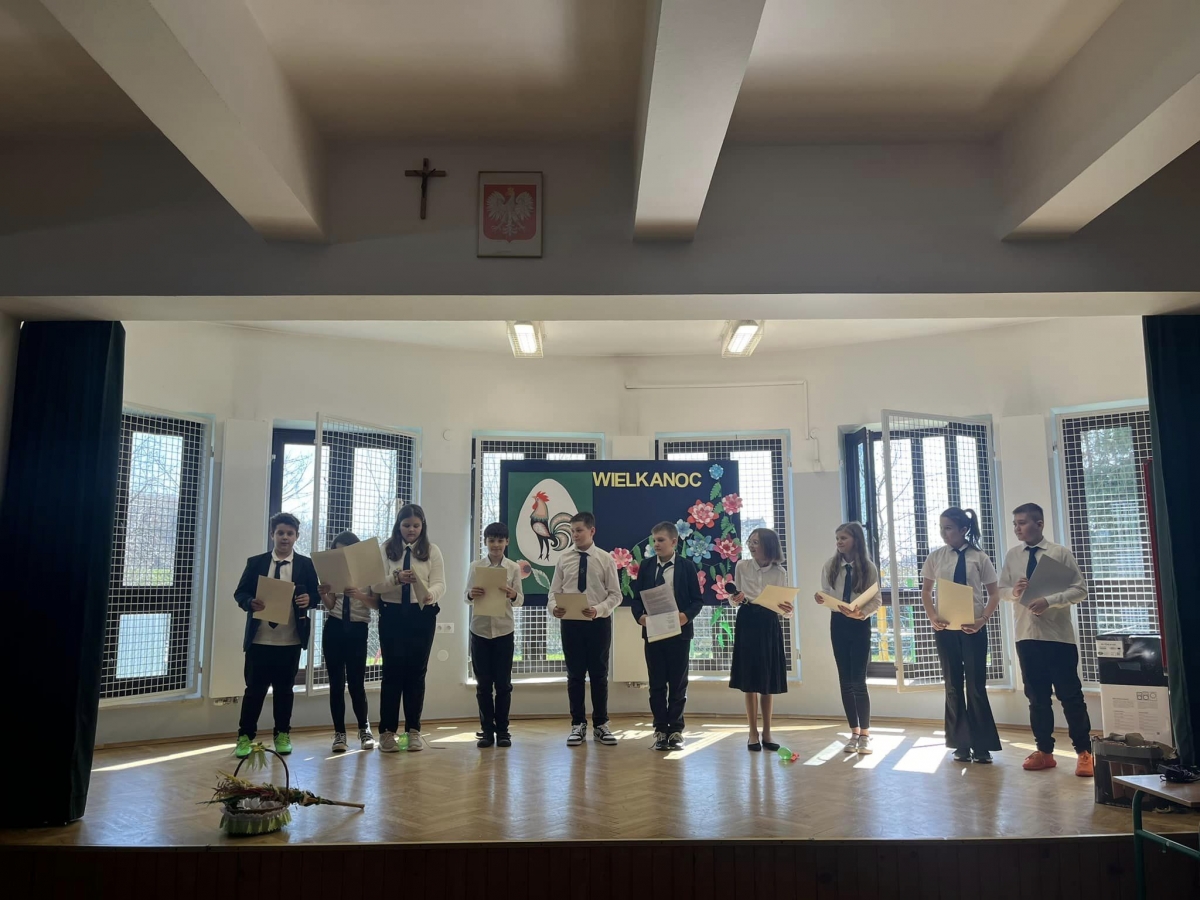Przywołanie męki Pańskiej, przypomnienie okoliczności Zmartwychwstania Chrystusa, a także czytane wiersze oraz pieśni poruszały zagadnienia związane z wiarą współczesnego człowieka oraz podkreśliły prawdziwą wartość i sens zbliżających się świąt. Wartościowe i refleksyjne nauki przekazał nam także nasz sąsiad, Ojciec Wojciech z Klasztoru w Tyńcu.