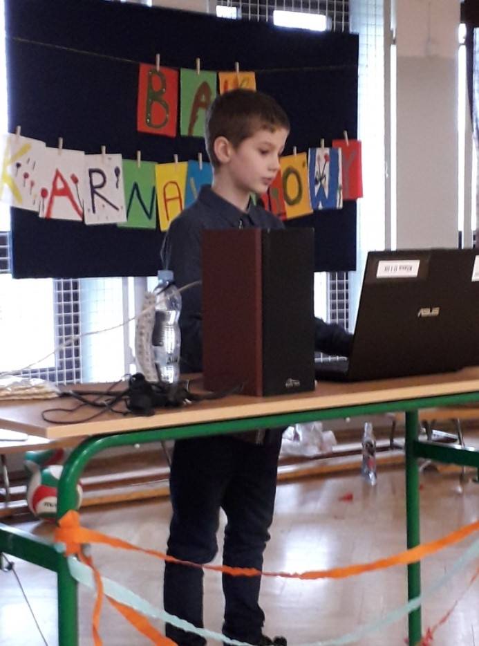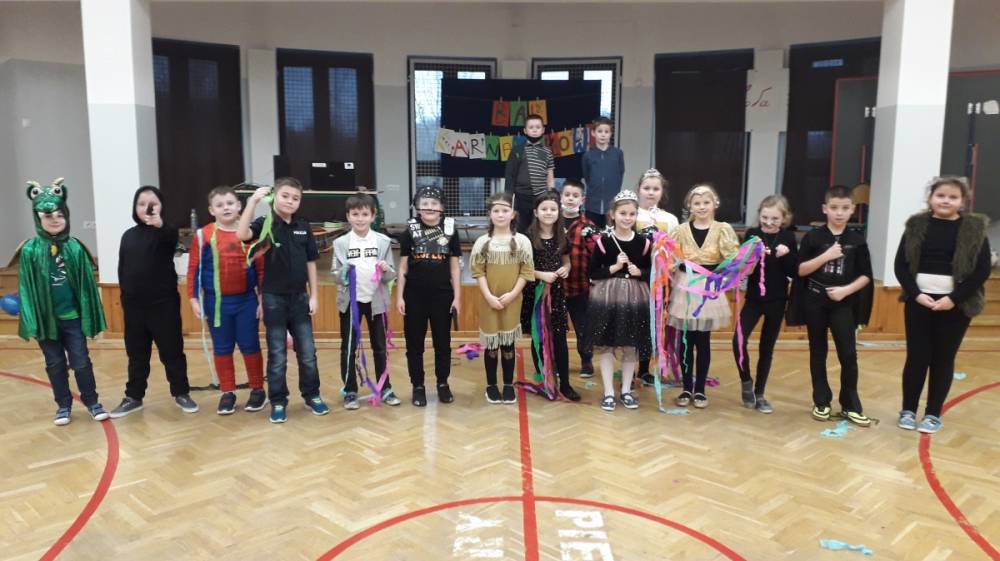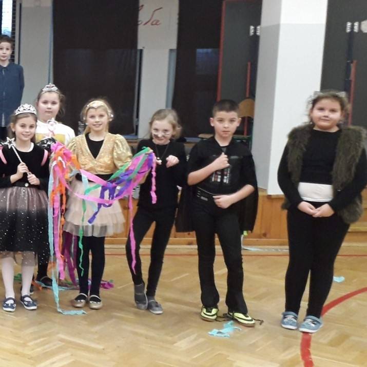 Dnia 11 lutego uczniowie klasy II bawili się na obiecanej jeszcze przed feriami zabawie karnawałowej. Wcześniej odbyło się wspólne przystrajanie sali, dmuchanie balonów i przygotowanie napisu ,,BAL KARNAWAŁOWY". Zabawę rozpoczął pokaz strojów i wspólny taniec. Następnie dzieci bawiły się do wybranej przez siebie muzyki. Dzieci przygotowały też i przeprowadziły konkursy: rysowanie na czas, odbijanie balonów, odpowiedzi na pytania. Rodzice pomogli przy poczęstunku, dzięki czemu ,,balowicze" mogli skosztować domowych specjałów. Czas zabawy minął niespostrzeżenie, a moment pójścia do domów zaskoczył wszystkich.