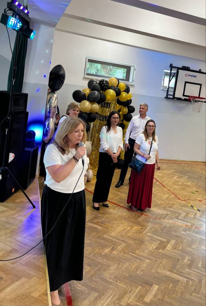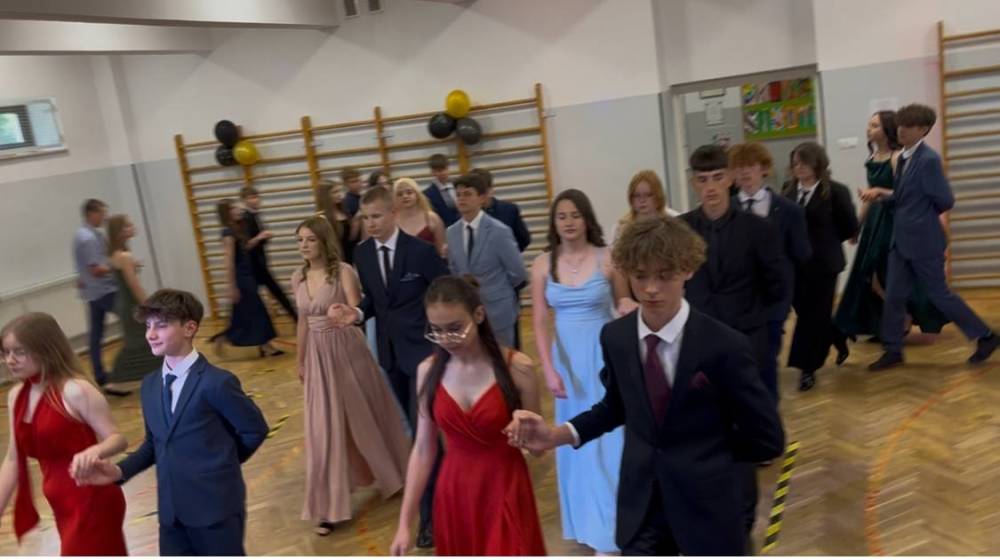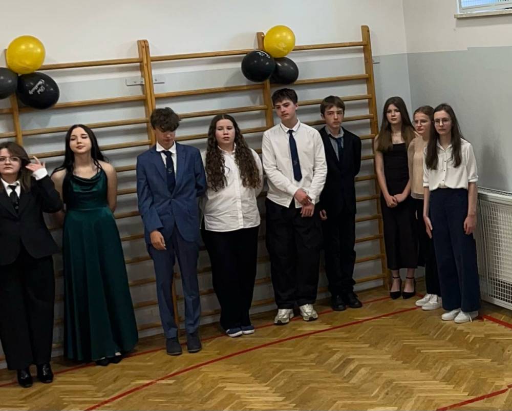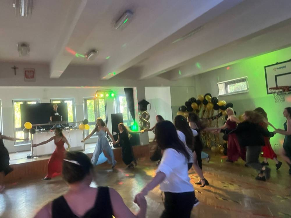 Rodzice naszych ósmoklasistów z niespotykanym zaangażowaniem przygotowali to uroczyste spotkanie. Był profesjonalny DJ i niezwykle energetyczne przeboje. Nastrój wieczoru był wspaniały, a nasi uczniowie niesamowici: elegancko ubrani, radośni, pełni dobrego humoru i ochoty do zabawy.