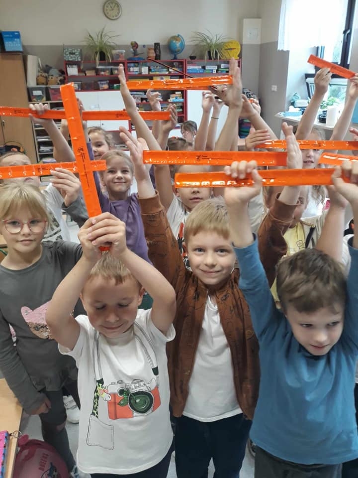W ramach akcji "Odblaskowa Szkoła" promujemy hasło "BEZPIECZNI NA DRODZE", nosząc odblaski!