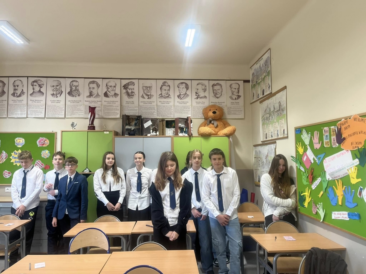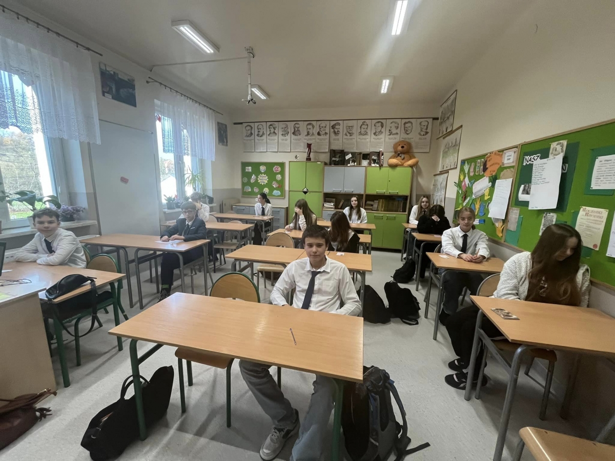 Uczniowie zainteresowani tematem z kl. VI - VIII Janek B., Mikołaj, Gabrysia, Adam, Patrycja, Gosia, Janek S., Ola, Emilka, Natalia, Wiktoria, Anastazja mieli możliwość wykazania się wiedzą i umiejętnościami w konkursie tematycznym organizowanym przez Małopolskiego Kuratora Oświaty.