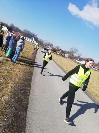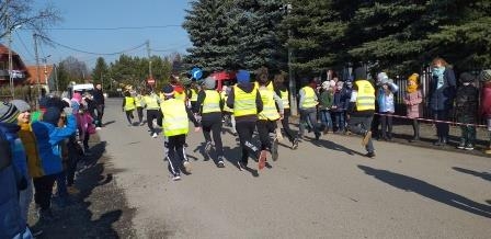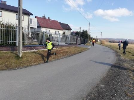 Uczniowie, którzy pozostali w Szkole również pamiętali o Wyklętych. Po raz pierwszy przyłączyliśmy się do Ogólnopolskiego Biegu Tropem Wilczym. Była to już X edycja tego Biegu. Chętni uczniowie musieli przebiec 1963 metry. Wszystko zaczęło się od rozgrzewki poprowadzonej przez nauczyciela wf Marcina Sadko. Następnie każdy uczestnik biegu otrzymał numer oraz kamizelkę odblaskową. Około godziny 10.00 z linii start, która znajdowała się przed naszą szkołą ruszyło 32 uczniów z klas IV-VIII. Trasa wiodła przez pętlę, Koreję i z powrotem na boisko LKS Tęcza Piekary. Młodzi biegacze z wielkim entuzjazmem wystartowali i z wielką determinacją zmierzali do celu. Okazało się, że dystans prawie 2 km nie jest wcale taki krótki i wymaga pewnej zaprawy sportowej. Linię mety jako pierwszy przekroczył uczeń klasy IV Jakub Mitka, druga przybiegła Zuzanna Dolik z klasy VII i trzecie miejsce przypadło w udziale uczniowi klasy IV Alanowi Kowalskiemu. Trzech pierwszych uczestników otrzymało od organizatora biegu piękne medale, które z dumą nosili przez cały dzień. Gratulacje dla tej trójki!!! Pozostali uczestnicy również otrzymali symboliczne nagrody, ale przede wszystkim wielkie brawa i doping młodszych kolegów, szczególnie dzieci z oddziałów przedszkolnych, które za pomocą dzwonków i grzechotek robiły w tym przypadku bardzo potrzebny hałas.
