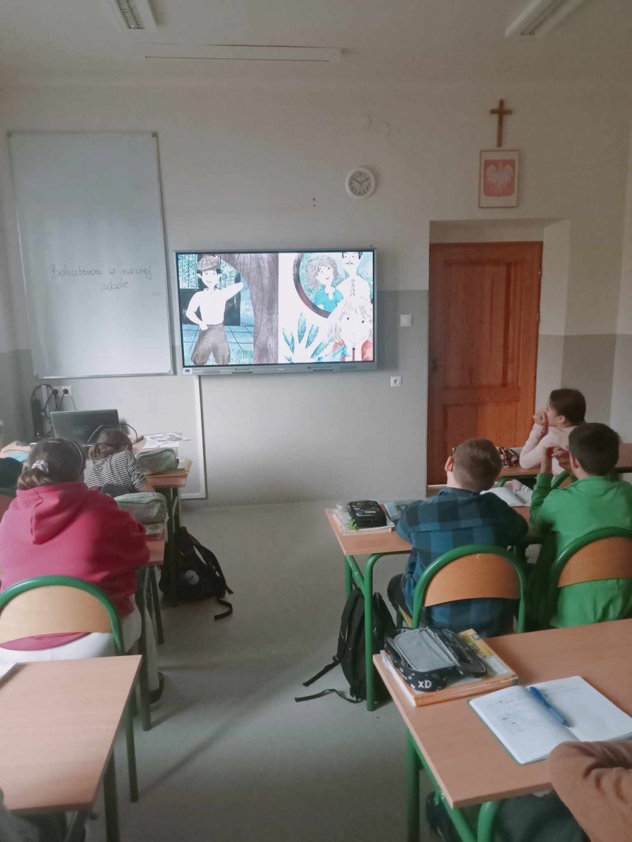 Dzieci młodsze oglądnęły materiał pt. „Jak zostałem bohaterem?”. To opowiadanie Elizy Piotrowskiej, w którym pierwszoosobowym narratorem jest ciekawy świata 8-letni Leon mieszkający w Warszawie. Chłopiec wykazuje się czujnością i odwagą, gdy z pomocą policjantów udaje mu się złapać osiedlowego złodziejaszka. Za pośrednictwem obrazowego i humorystycznego języka najmłodsi uczniowie dowiedzą się czy można zostać bohaterem nawet, gdy nie ma wojny i jest się dzieckiem.