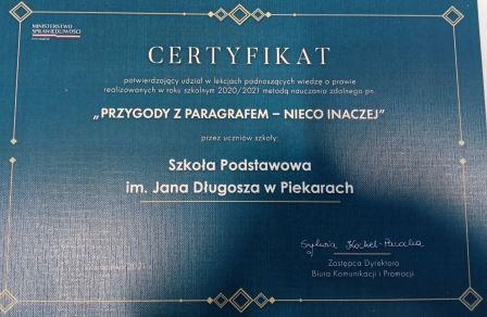 CERTYFIKAT „Przygody z Paragrafem – nieco inaczej”