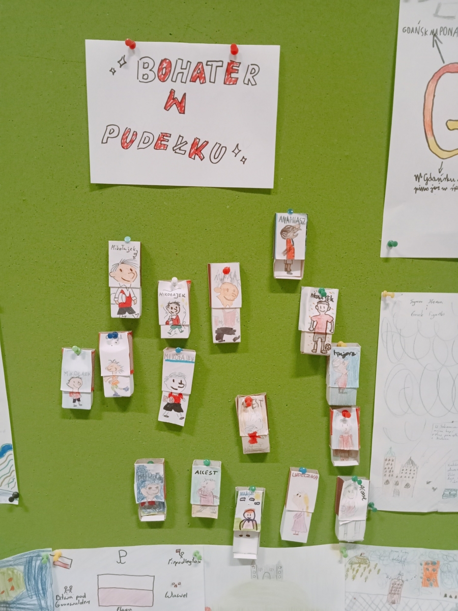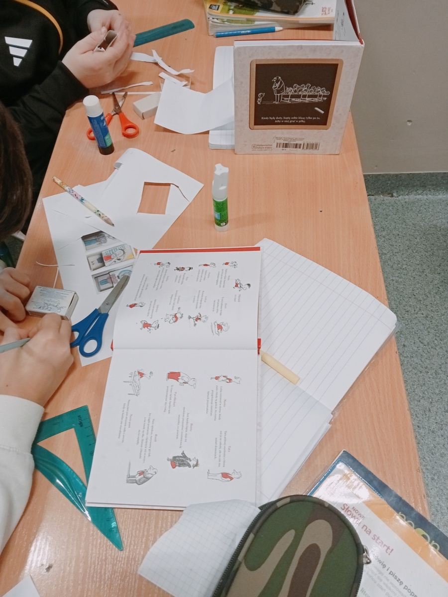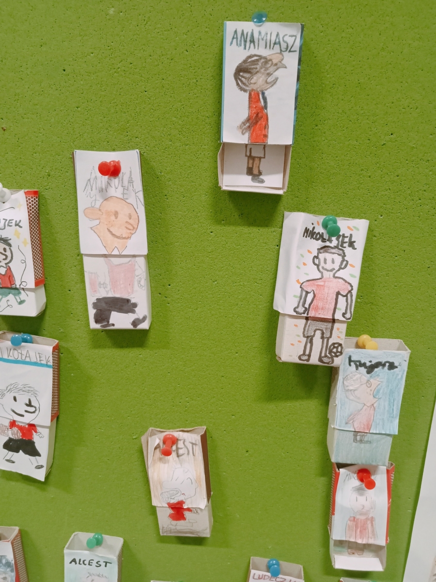 Dzisiaj na języku polskim w klasie 4 tworzyliśmy bohaterów lektury "Mikołajek" w pudełku po zapałkach. Uczniowie z zaangażowaniem wykonywali pracę, a 45 minut minęło ekspresowo. Efekty pracy zawiesiliśmy na klasowej gazetce.