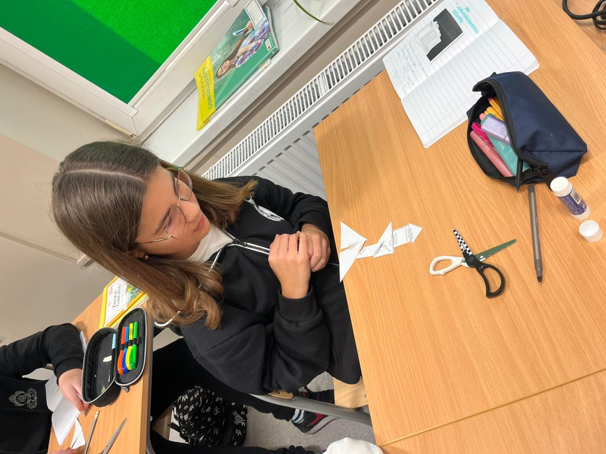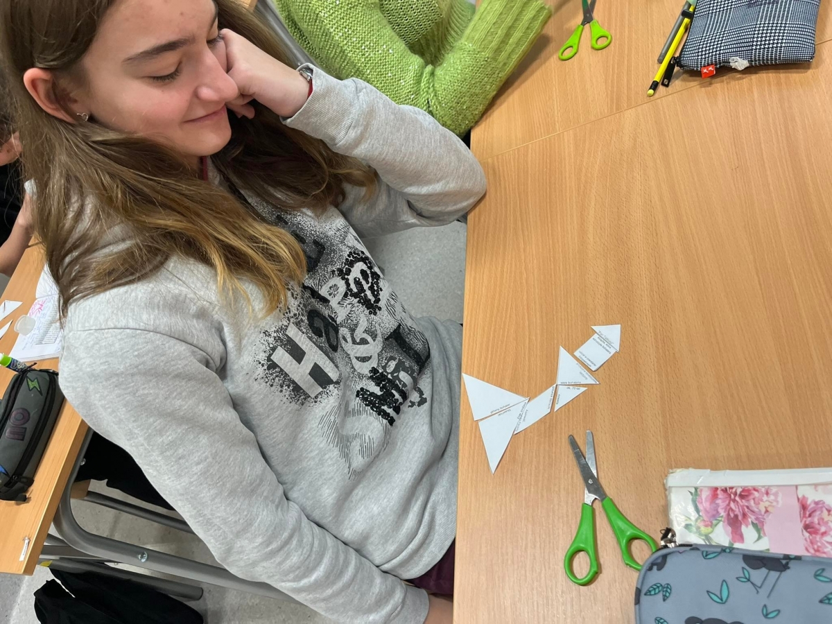 Był tangram do lektury. Każdy uczeń rozcinał kwadrat na części i układał je tak, by pasujące do siebie informacje przylegały bokami. Uzyskana figura oczywiście przypominała latarnię.