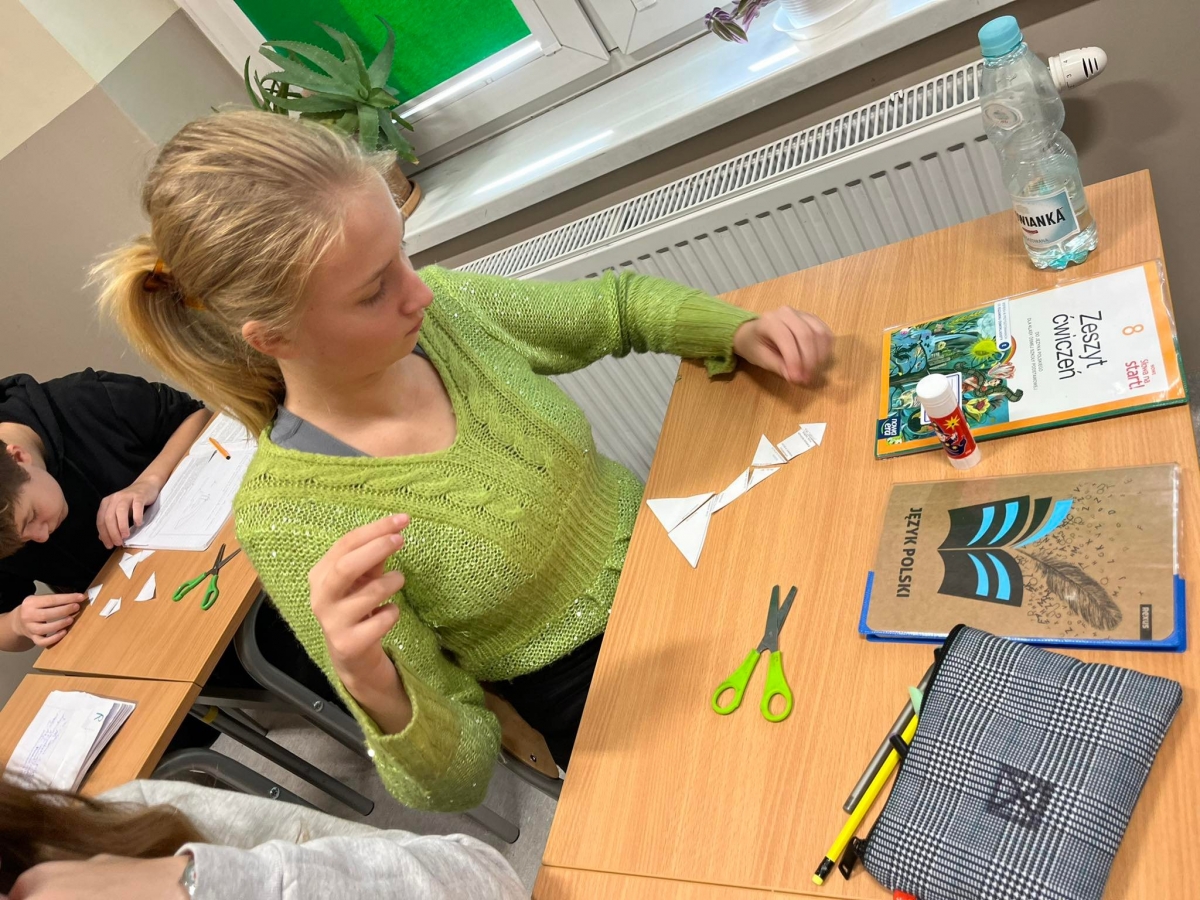 Kolejnym zadaniem był test uważności, uczniowie otrzymali losowe paski z zadaniami i zapoznali się z zadaniem. Każdy musiał uważnie obserwować otoczenie: to, co robią koledzy i koleżanki i w odpowiednim momencie wykonać swoje zadanie. Uwaga była napięta maksymalnie, jedni pisali, inni skakali, a jeszcze inni musieli rysować.
