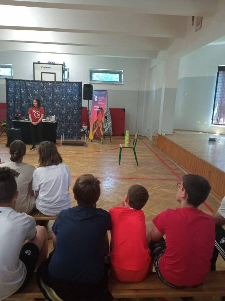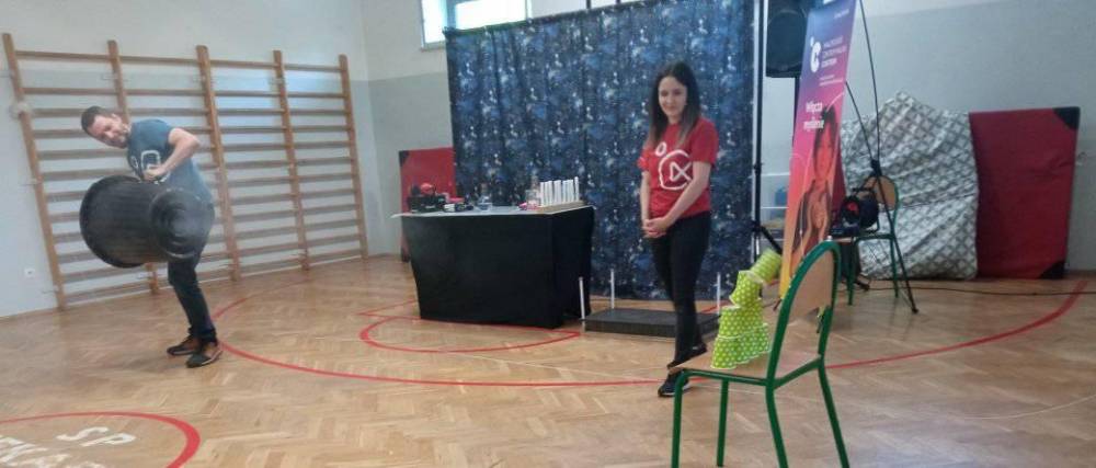 15 czerwca do naszej szkoły zawitali przedstawiciele Małopolskiego Centrum Nauki Cogiteon. Instytucji, której celem jest edukacja przez zabawę i angażowanie się w samodzielne lub zespołowe eksperymenty naukowe, projekty badawcze i społeczne. MCNC poprzez swoje działania rozbudza w uczestnikach zamiłowanie do nauki, pomaga zrozumieć świat, budować postawę kreatywności, otwartości i nawyk samodzielnego, twórczego, ale też krytycznego myślenia. Wszyscy uczniowie naszej szkoły, od najmłodszych zerówkowiczów po najstarszych ósmoklasistów, uczestniczyli w ciekawych eksperymentach.