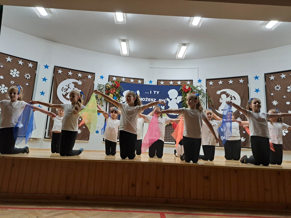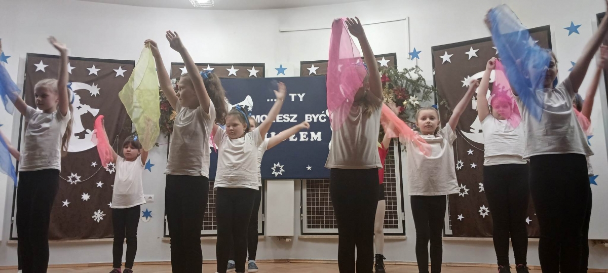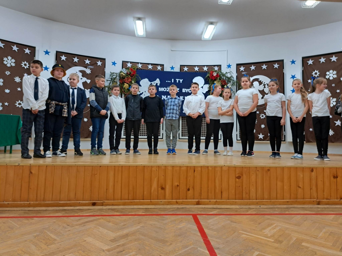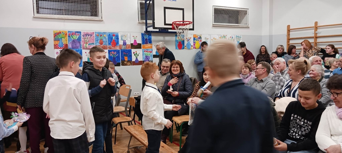 20 stycznia odbyło się w naszej szkole uroczyste spotkanie wnuków z Babciami i Dziadkami. Dzieci z klas I-III oraz z OP ,,Mądre Sówki" zaprezentowały miłym gościom swoje umiejętności aktorskie, taneczne, wokalne i recytatorskie. Babcie i Dziadkowie obejrzeli zachęcające do refleksji Jasełka, wysłuchali wierszy, piosenek i płynących z serca życzeń, a także z radością podziwiali pokaz grupy tanecznej ,,Małe Gwiazdki". Wszystkie dzieci starały się wystąpić jak najpiękniej, aby w ten sposób okazać swoje uczucia bliskim. Podczas spotkania nie zabrakło też wspaniałych prezentów własnoręcznie wykonanych przez dzieci i wspólnie spędzonego czasu podczas słodkiego poczęstunku. Całe spotkanie przebiegło w miłej, a nawet rodzinnej atmosferze.