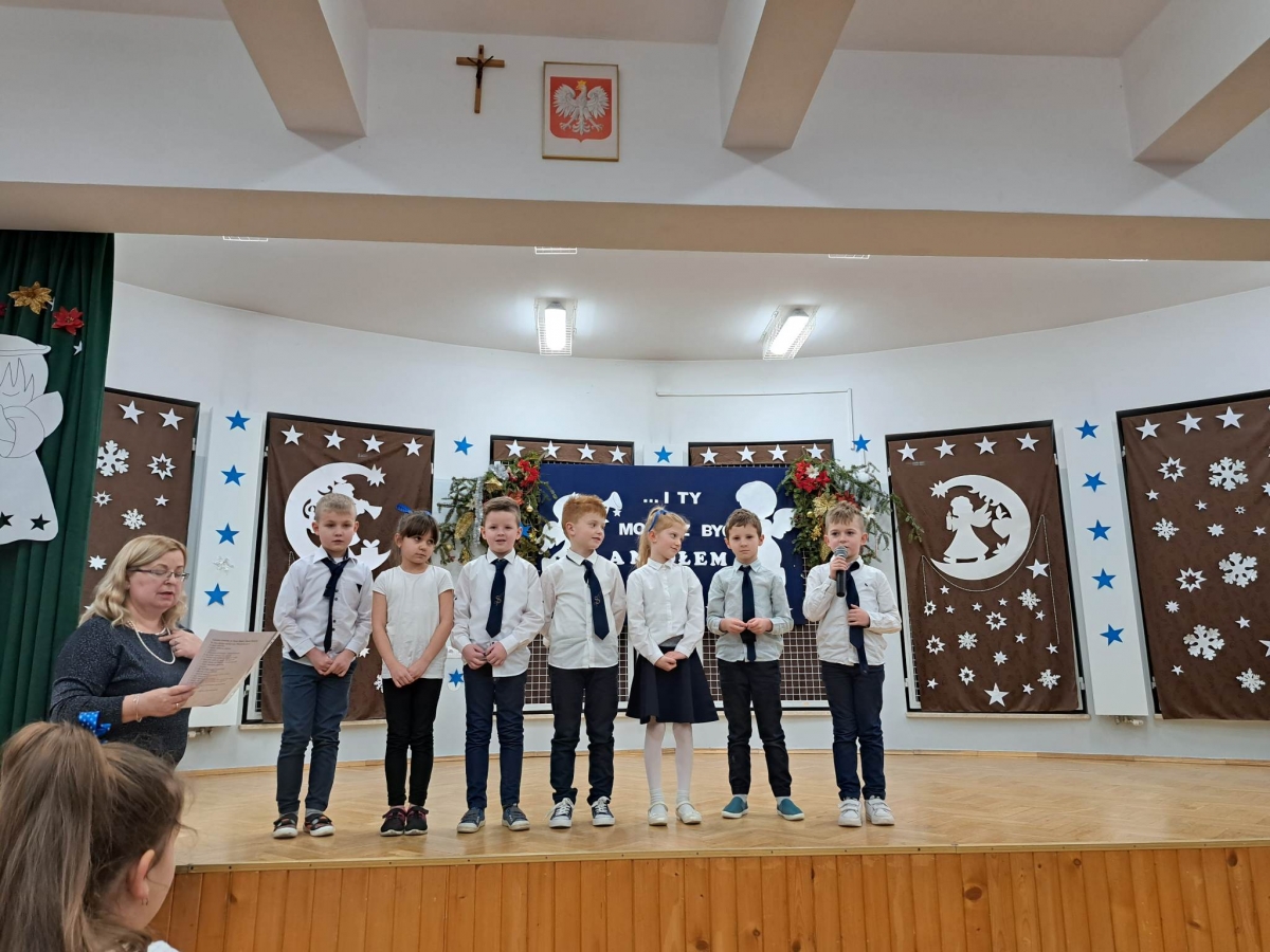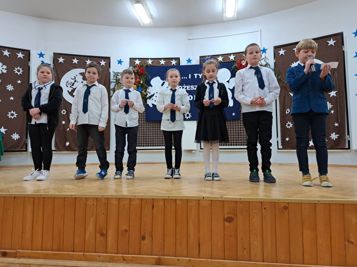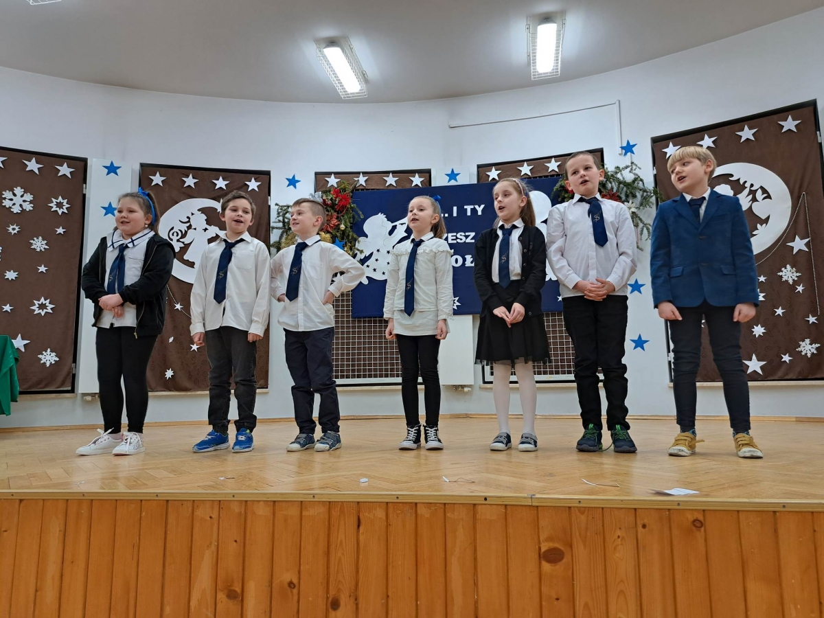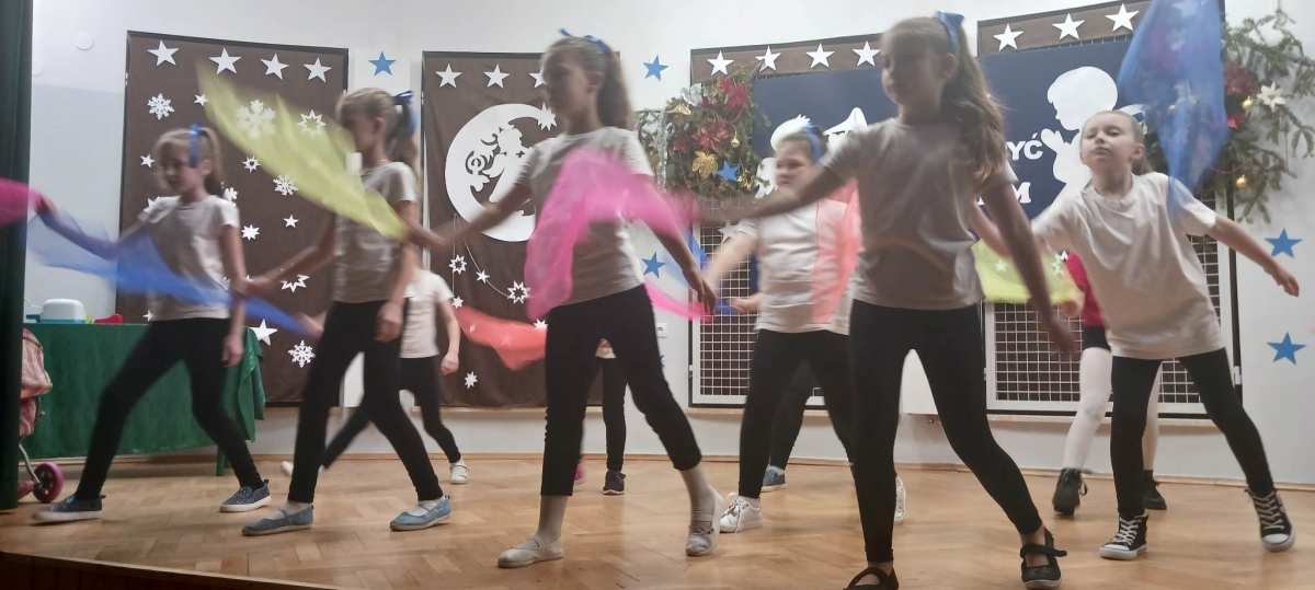 20 stycznia odbyło się w naszej szkole uroczyste spotkanie wnuków z Babciami i Dziadkami. Dzieci z klas I-III oraz z OP ,,Mądre Sówki" zaprezentowały miłym gościom swoje umiejętności aktorskie, taneczne, wokalne i recytatorskie. Babcie i Dziadkowie obejrzeli zachęcające do refleksji Jasełka, wysłuchali wierszy, piosenek i płynących z serca życzeń, a także z radością podziwiali pokaz grupy tanecznej ,,Małe Gwiazdki". Wszystkie dzieci starały się wystąpić jak najpiękniej, aby w ten sposób okazać swoje uczucia bliskim. Podczas spotkania nie zabrakło też wspaniałych prezentów własnoręcznie wykonanych przez dzieci i wspólnie spędzonego czasu podczas słodkiego poczęstunku. Całe spotkanie przebiegło w miłej, a nawet rodzinnej atmosferze.