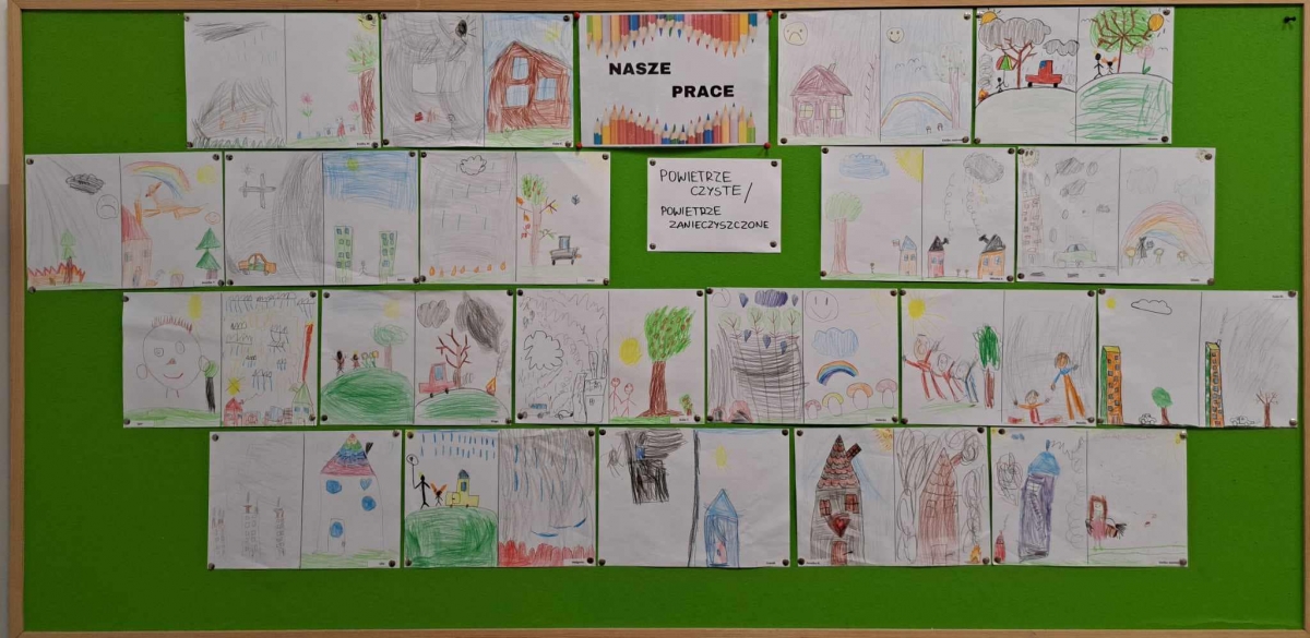 O tym, w jaki sposób dbać o czyste powietrze, rozmawiały także przedszkolaki z grupy "Mądre Sówki". Po zajęciach dzieci stworzyły pracę plastyczną pt. "Powietrze czyste/powietrze zanieczyszczone".