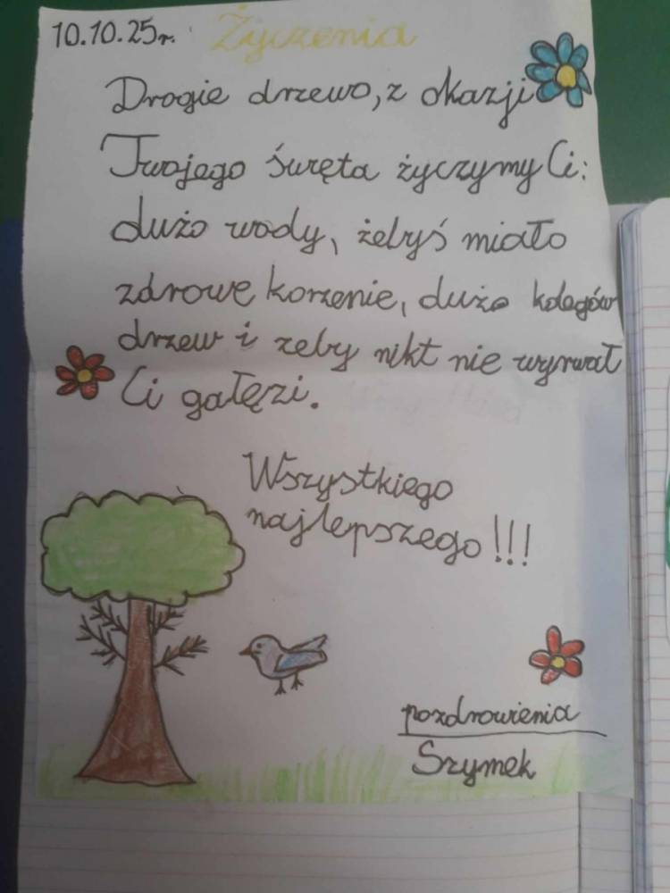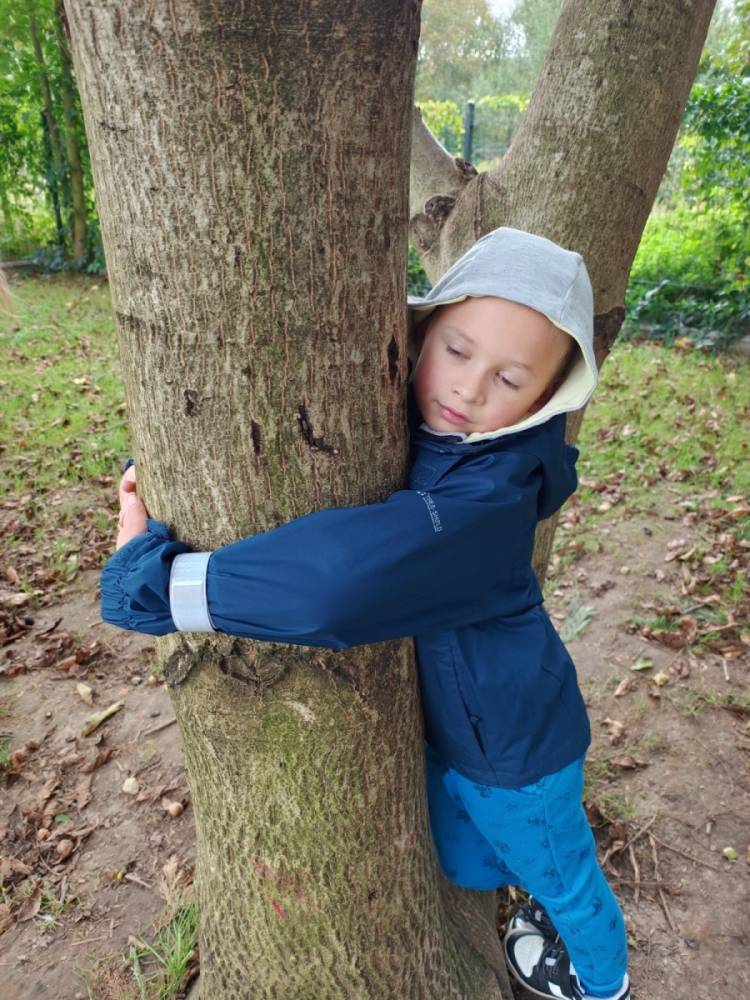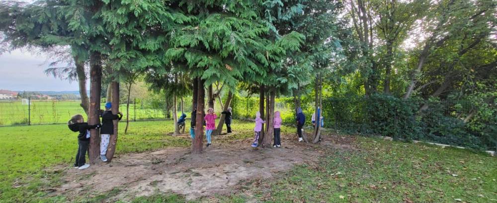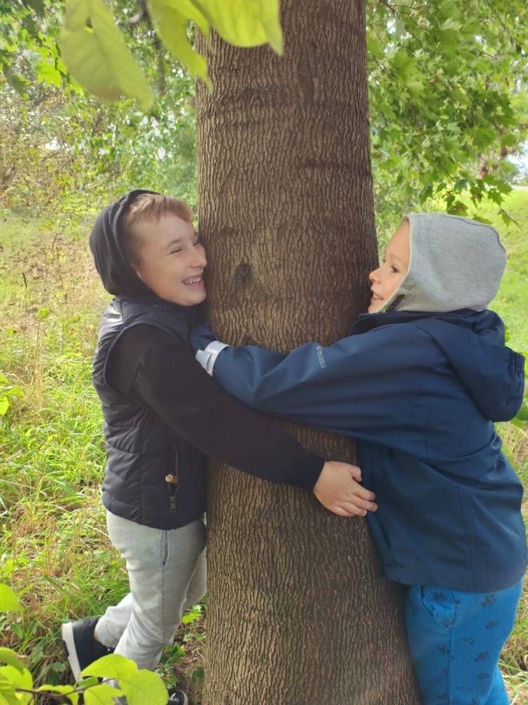 To piękna inicjatywa, która przypomina nam, jak ważne są drzewa w naszym życiu – dają tlen, cień, schronienie i spokój.Uczniowie z radością przytulali się do drzew pokazując, że dbanie o przyrodę może być proste, przyjemne i pełne pozytywnej energii!
