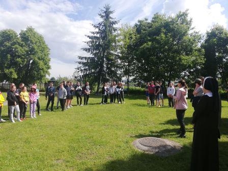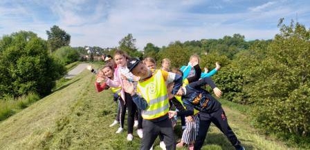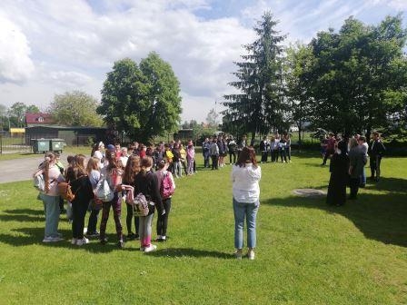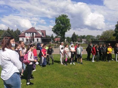 Uczniowie z klas młodszych, korzystając z pięknej pogody, wybrali się na wycieczkę po najbliższej okolicy.