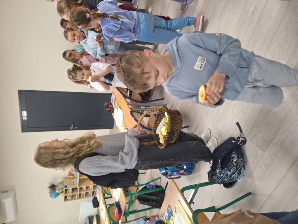 Degustacja owoców połączona została z rozmową na temat wartości zdrowotnych owoców.