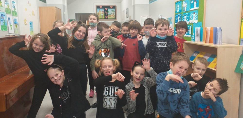 W kalendarzu 17 lutego to święto wszystkich kotów, dlatego też uczniowie naszej szkoły świetnie się bawili, zamieniając się w te miłe futerkowe stworzenia. Nie obeszło się bez ulubionych kocich zabaw, wymagających nie lada sprytu i zręczności. Dzieci z oddziału 0 oraz uczniowie kl. III mogły wykazać się wiedzą o kotach zarówno tych domowych, dzikich, jak i tych, które znają z bajek i filmów. Dzień Kota to nie tylko okazja do zabawy, ale przede wszystkim czas na refleksję nad losem dzikich, bezdomnych kotów, szczególnie zimą, kiedy to nie tylko trudno zdobyć im pożywienie, ale również nie mają schronienia przed zimnem. Pamiętajmy więc o pomaganiu bezdomnym kotom, bo już nawet przedszkolaki wiedzą, że trzeba ponosić odpowiedzialność za te stworzenia, które oswoiliśmy.