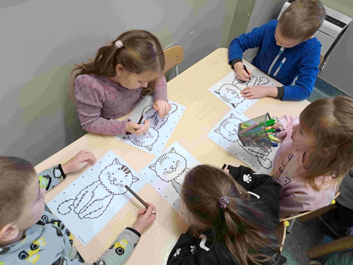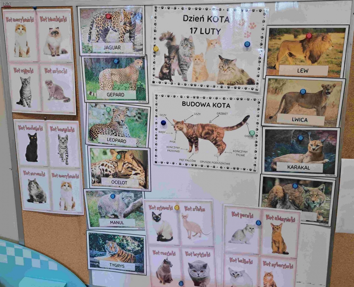 Dnia 17 lutego dzieci z oddziału przedszkolnego „Mądre Sówki” świętowały Dzień kota. Z tej okazji przypomniały sobie, co wiedzą na temat tych zwierząt, a także usłyszały wiele ciekawostek na ich temat. Przedszkolaki poznały niektóre rasy kotów domowych, jak również dzikich kotów, o których także nie należy zapominać. Dzieci wykonywały „kocie” zadania rozwijające umiejętności czytania i liczenia, a na koniec wykonały wycinankę z kotem w roli głównej.