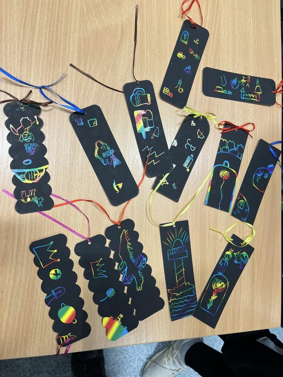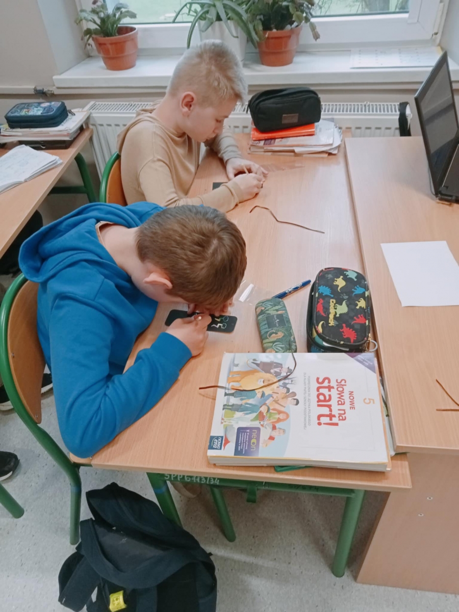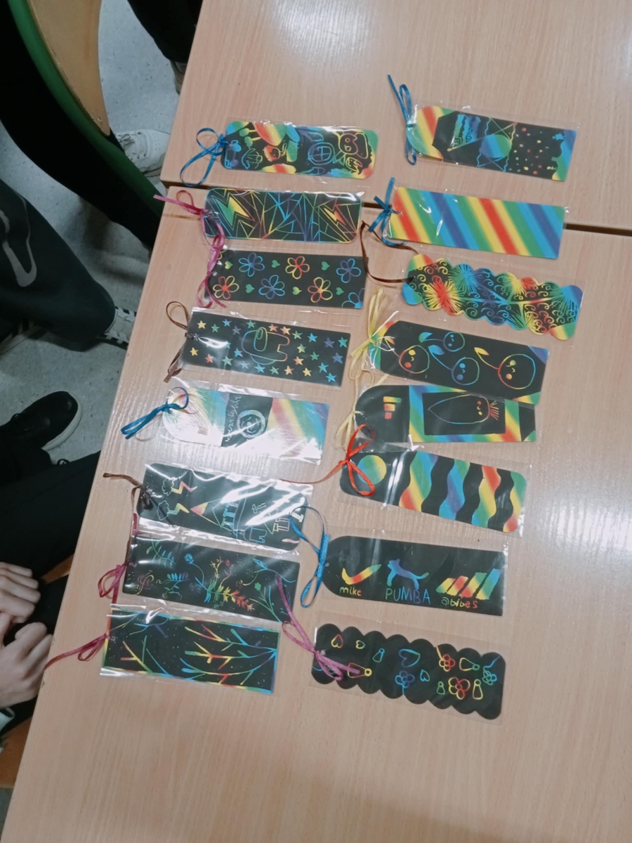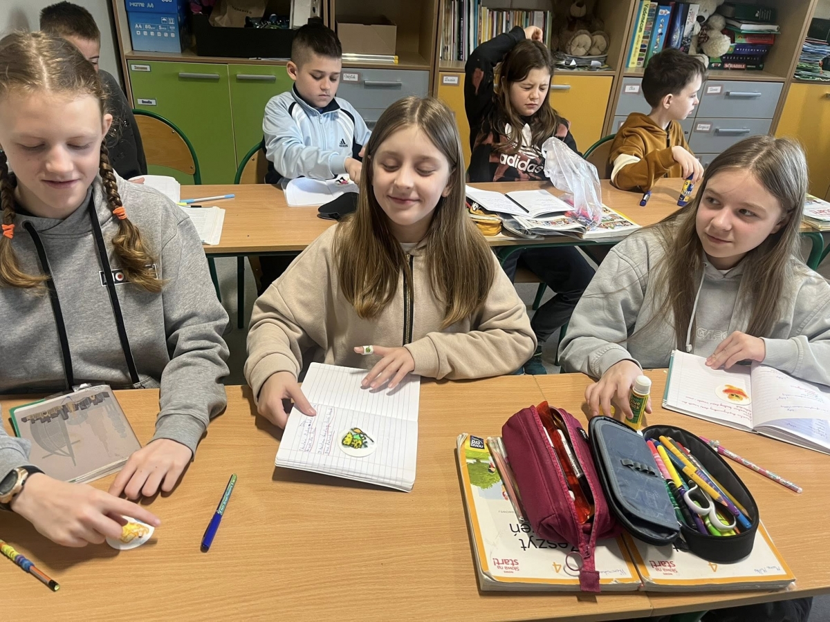 W czasie zajęć z języka polskiego uczniowie włączyli się bardzo aktywnie w promocję tych ważnych świąt i przedstawiali bohaterów ulubionych lektur szkolnych w sposób niekonwencjonalny: powstały piękne wydrapywane zakładki do książek, kamyczkowe podobizny bohaterów i „rosnące obrazki” z lektur szkolnych.