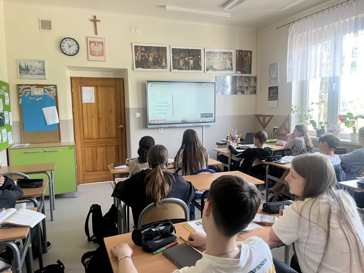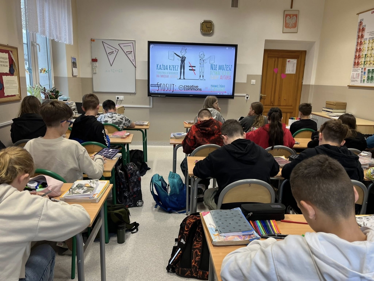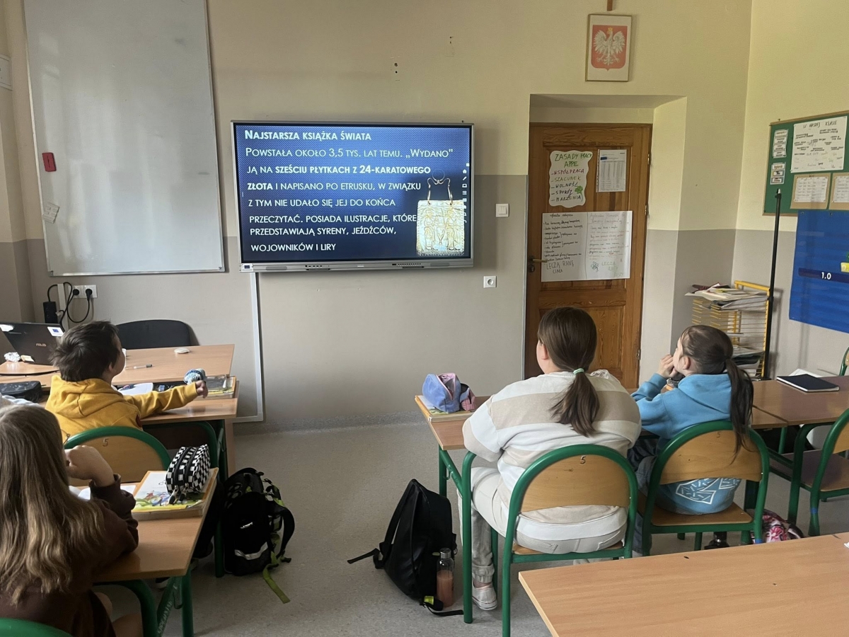uczniowie klas IV - VIII poznawali wiele ciekawostek na temat książek, a także dowiedzieli się, co to są prawa autorskie i na czym polega ochrona własności intelektualnej.