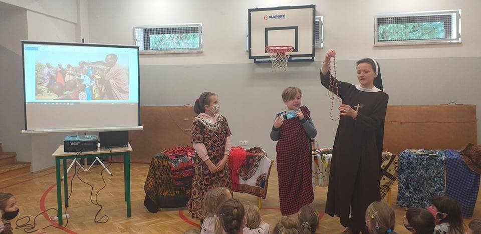To dobry czas, aby bardziej niż zwykle zainteresować się misjami. Temu między innymi służył przyjazd do naszej szkoły w poniedziałek 25. 10. 2021 Siostry Mileny Pociask - felicjanki, która przez pewien czas pracowała na misjach w Tanzanii. Siostra ukazała uczniom naszej szkoły (w pewnym zarysie) życie i sytuacje ludzi, a zwłaszcza dzieci w Tanzanii . Świadomość tego, jaki los mają ich