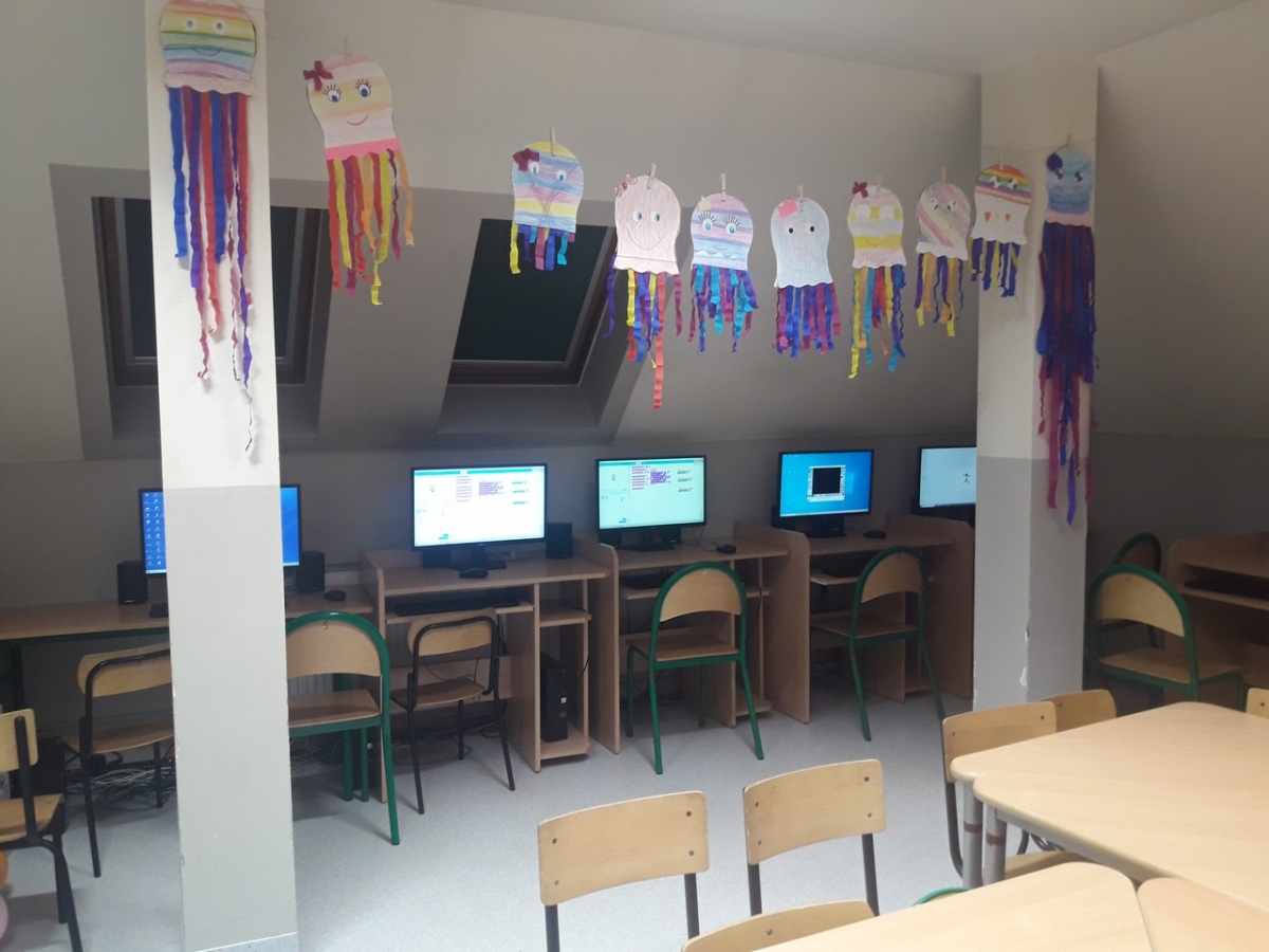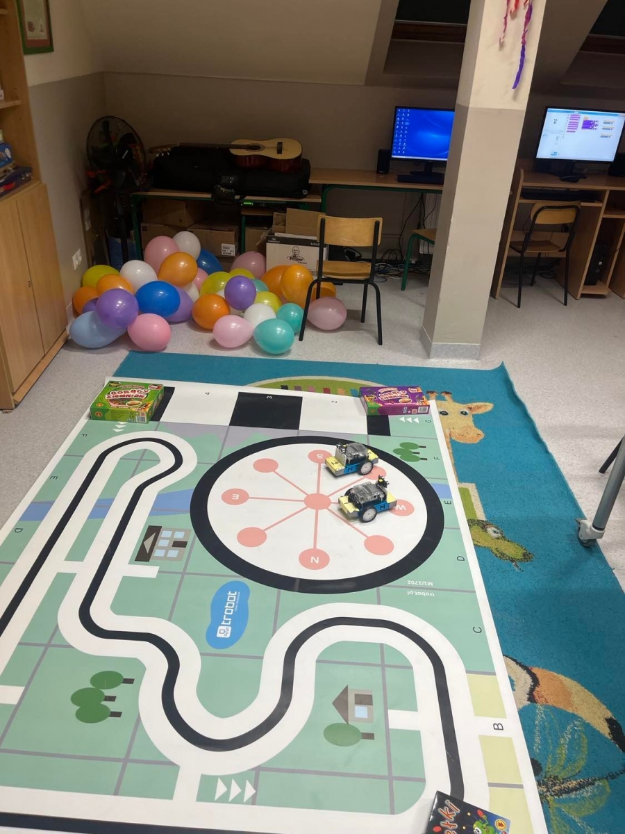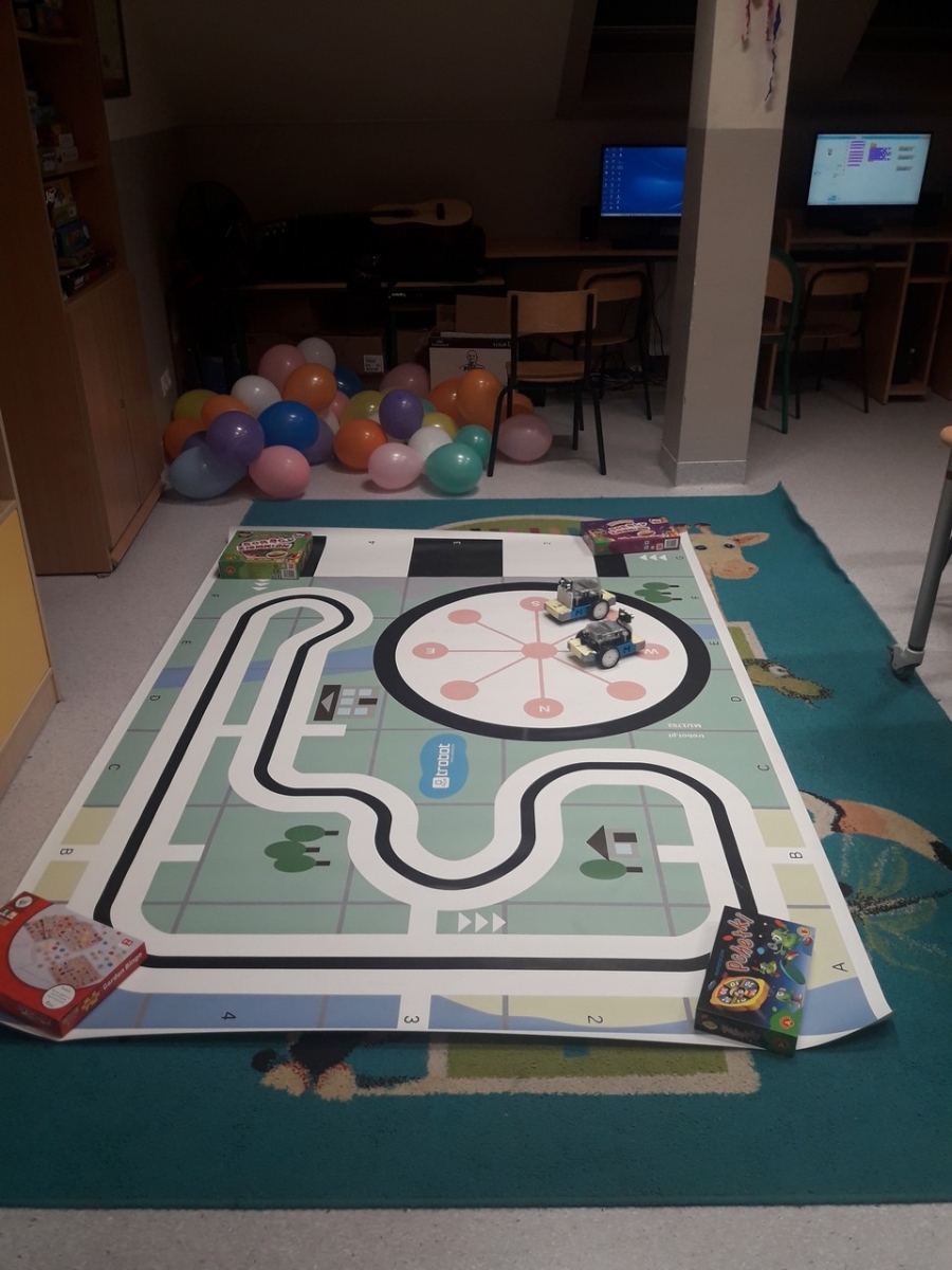 Podczas Dnia Otwartego w naszej szkole zwiedzający mogli zapoznać się z pracownią informatyczną. Zostały zaprezentowane możliwości drukarki 3D, różne programy użytkowe i edukacyjne zainstalowane na komputerach. Zaprezentowano sposób budowania i programowania robotów Lego Education Spike oraz robotów mBot. Zwiedzający mogli sterować robotami przy pomocy programu komputerowego: wyświetlać informacje na tablicy robota, operować dźwiękiem oraz światłem generowanym przez niego. Dużym powodzeniem cieszyła się możliwość starowania robotami na planszy przy pomocy klawiatury komputerowej.
