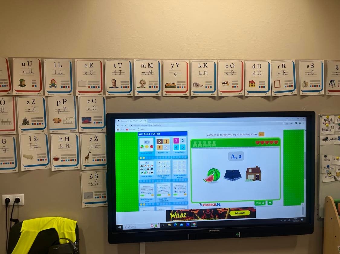 Na naszych miłych gości czekały zabawy ruchowe na sali gimnastycznej, a także zwiedzanie sal lekcyjnych, gdzie czekali nauczyciele. Były zabawy językowe, minikonkursy z wykorzystaniem tablic multimedialnych czy eksperymenty. Na każdego ich uczestnika czekały drobne nagrody: naklejki, zakładki, słodycze, kolorowanki. Jak widać na dołączonych zdjęciach, dzieci dobrze się bawiły. Rodzice mogli porozmawiać z nauczycielami różnych przedmiotów, odwiedzić świetlicę oraz bibliotekę.