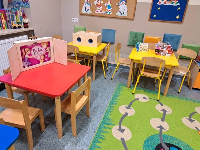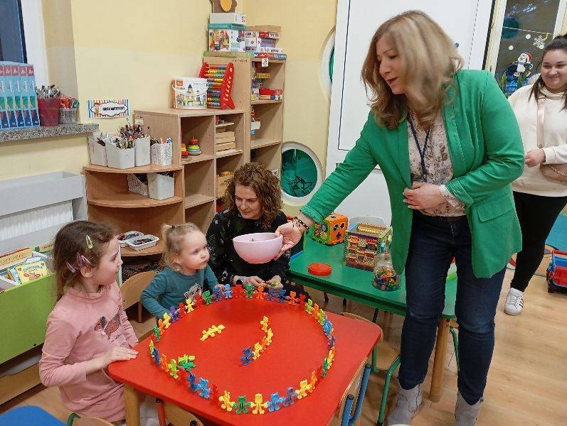 W oddziałach przedszkolnych również było bardzo ciekawie. Kandydaci na przedszkolaków próbowali swoich sił w roli paleontologów poszukując "skamielin" oraz układając szkielet dinozaura. Wyszukiwali również dinozaury wśród roślinności oraz podążali śladami wielkich gadów. Dzieci mogły także zagrać w gry, ułożyć puzzle, czy posłuchać bajki w teatrzyku Kamishibai. Był także kącik plastyczny ( kolorowanki, farby i stemple oraz "papierowe cuda", kącik sportowy i zabawy z chustą animacyjną. Dzieci bawiły się również kolorowymi krążkami i balonikami.