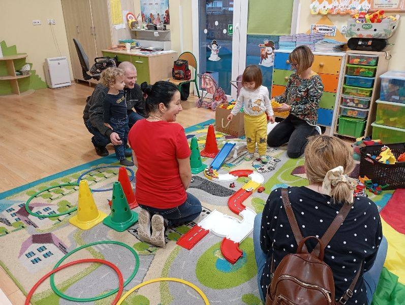 prezentację zestawów LEGO Education SPIKE. W sali gimnastycznej nawet rodzice dobrze sié bawili.