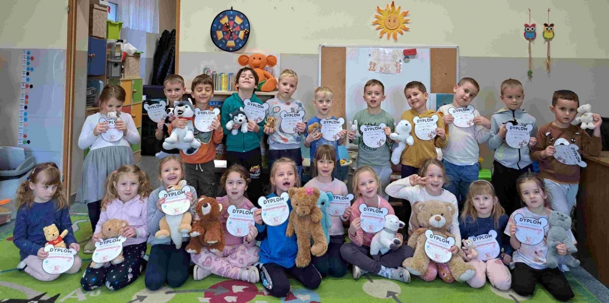 Miś to najlepszy przyjaciel dziecka. Dlatego nie sposób zapomnieć o jego święcie. Także przedszkolaki z oddziału przedszkolnego „Mądre Sówki” świętowały Dzień Pluszowego Misia. Najpierw przypomniały sobie historię powstania tej zabawki, następnie wymieniały wszystkie znane sobie misie. Nie zabrakło wśród nich: Kubusia Puchatka, Padingtona, Misia Usztaka, Gumisiów i wiele innych bohaterów bajek. Potem każde dziecko przedstawiło przyniesionego przez niego misia, brały udział w misiowej gimnastyce, rozwiązywały misiowe zadania i zatańczyły misiowy taniec. Na zakończenie każdy przedszkolak otrzymał dyplom Przyjaciela Pluszowego Misia.