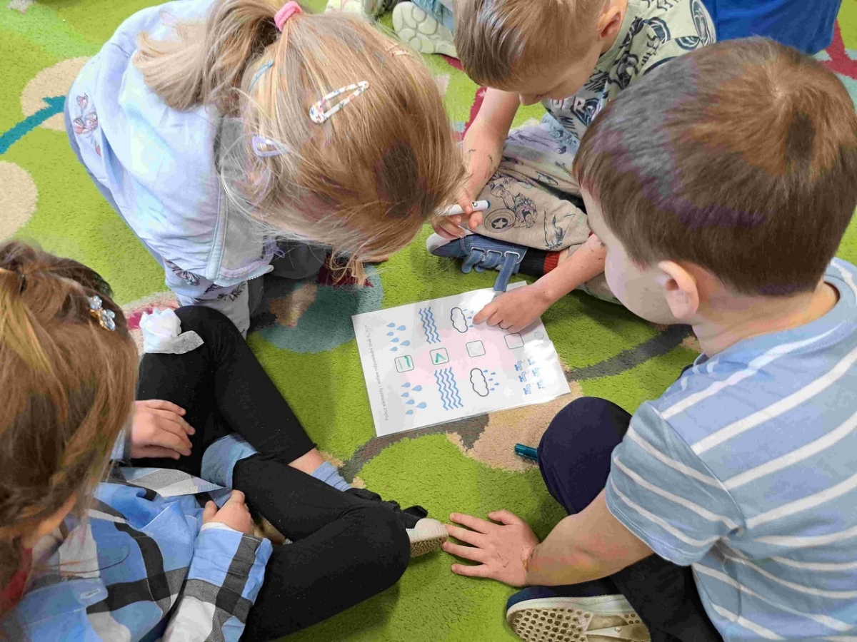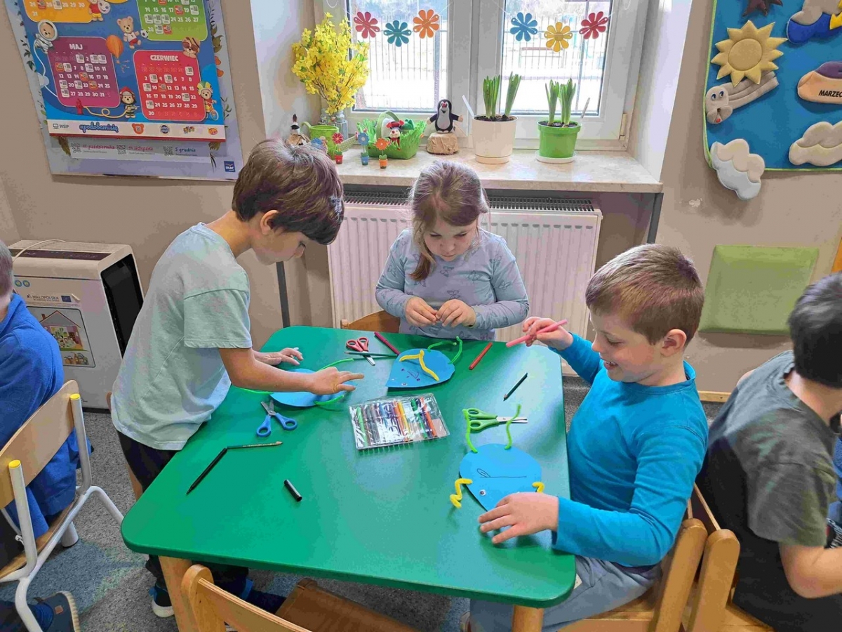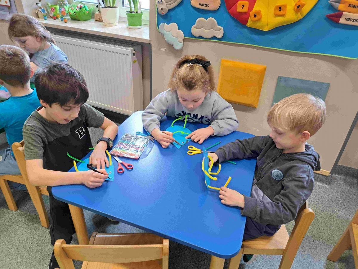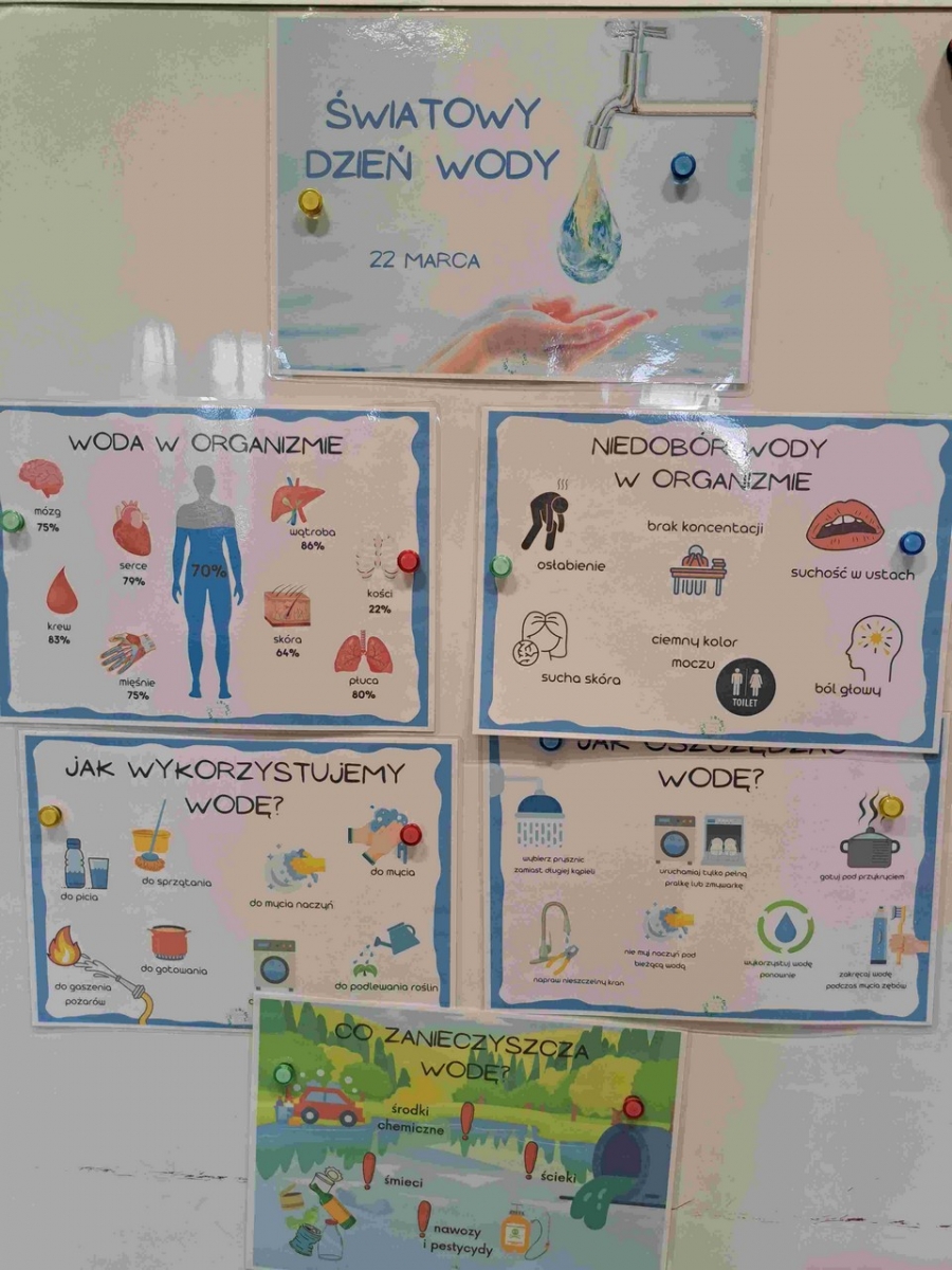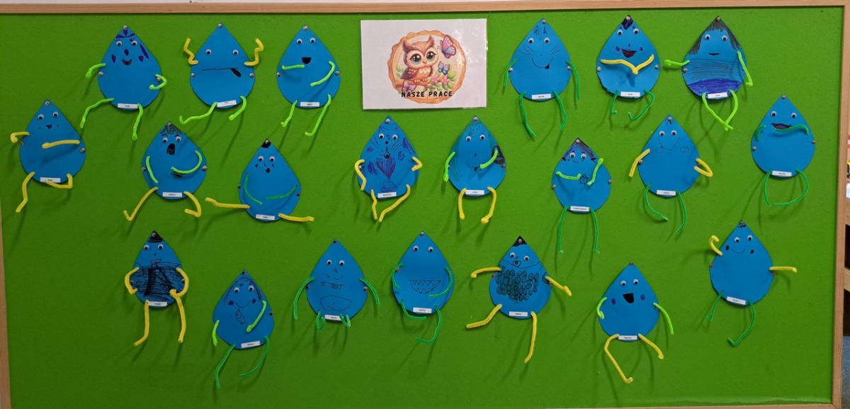 Woda jest nam niezbędna do życia. Wiedzą to już dzieci od najmłodszych lat. Przedszkolaki z grupy "Mądre Sówki" również zdają sobie sprawę, jak cenny to skarb. Dlatego świętując dzień wody przypomniały sobie wiele cennych informacji na jej temat, np. do czego używamy wody i w jaki sposób możemy ją oszczędzać. Poznaną wiedzę zastosowały w praktyce wykonując w grupach zadania związane z tematem. Na zakończenie wykonały pracę plastyczną "Kropelka".