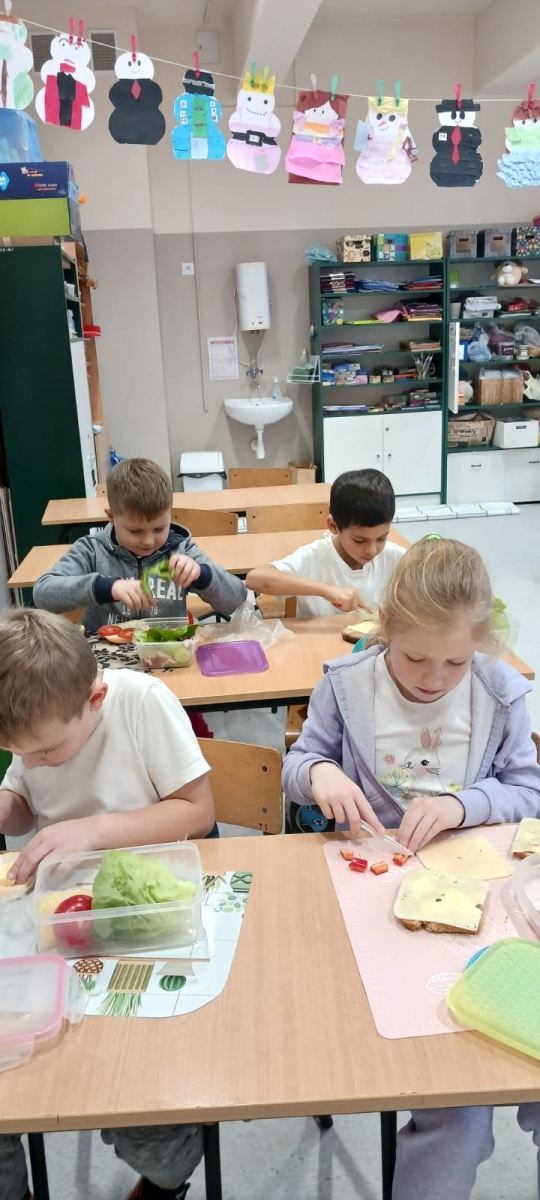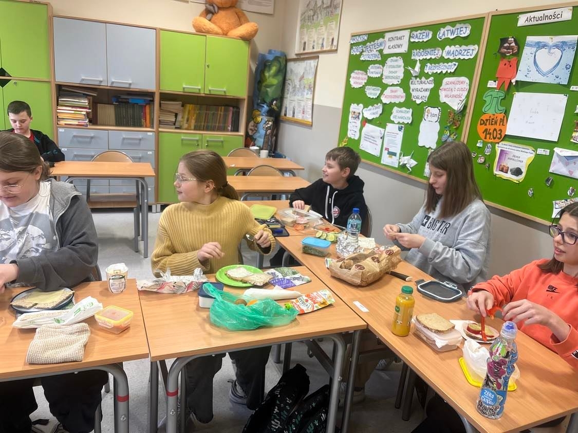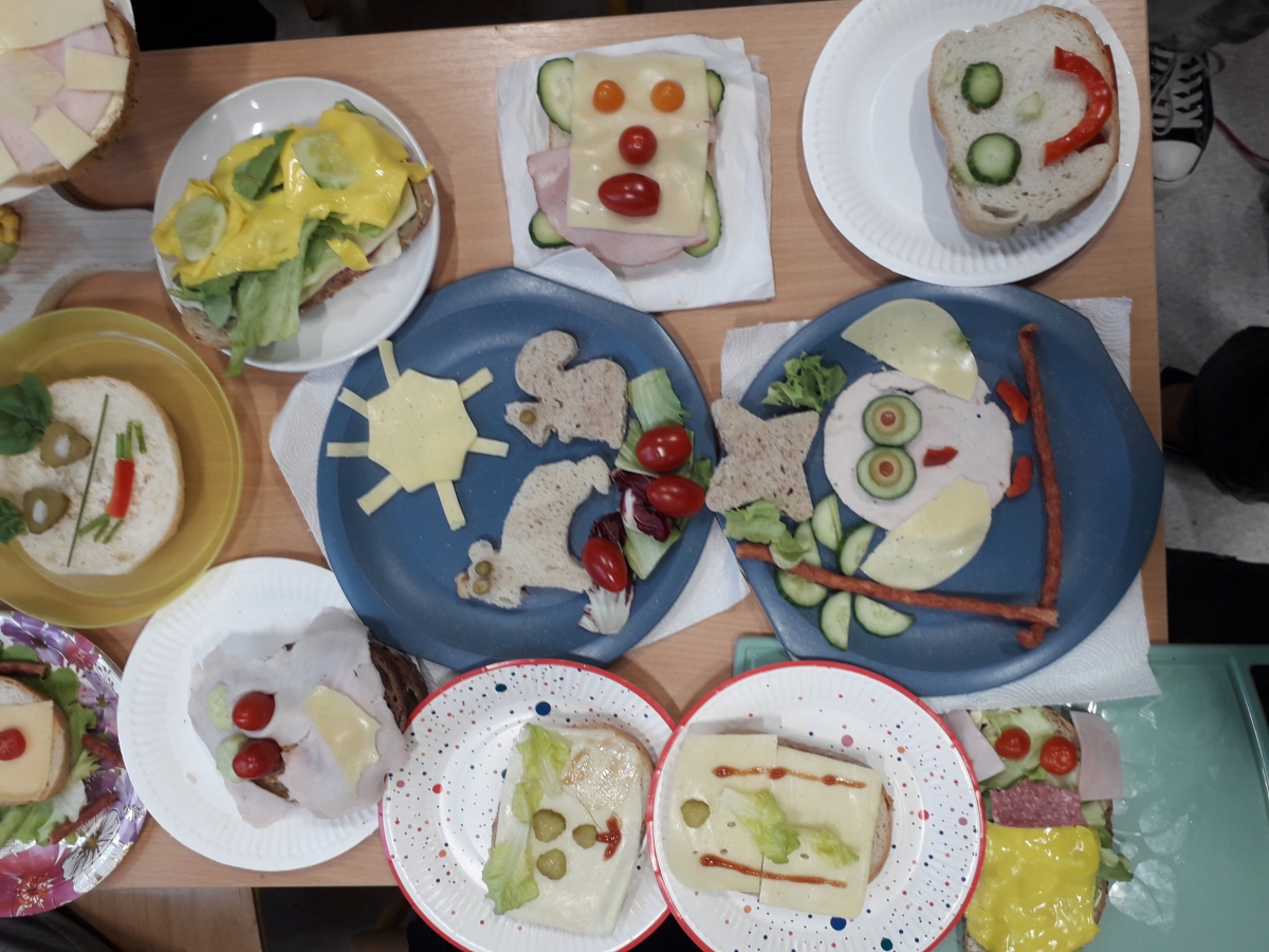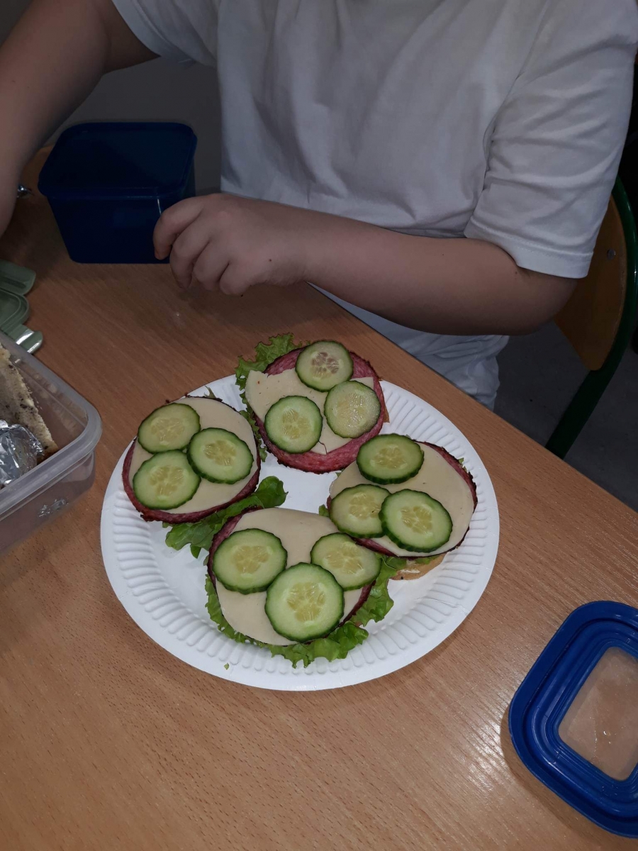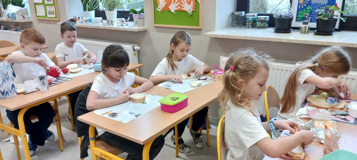 W lutym w naszej szkole obchodziliśmy Dzień Zdrowego Śniadania. Tego dnia dzieci przyniosły do szkoły wszystko to, co jest niezbędne, aby przygotować zdrowe śniadanie tzn. świeże warzywa i owoce, masło, sery, szynkę, ciemne pieczywo. Pamiętając o higienie i bezpieczeństwie, uczniowie pod opieką wychowawców przygotowali swoje drugie śniadanie. Były to zdrowe, kolorowe i apetyczne kanapki. Następnie uczniowie przystąpili do wspólnej degustacji przygotowanych przez siebie śniadań. Zrobione własnoręcznie, smakowały wyjątkowo.
