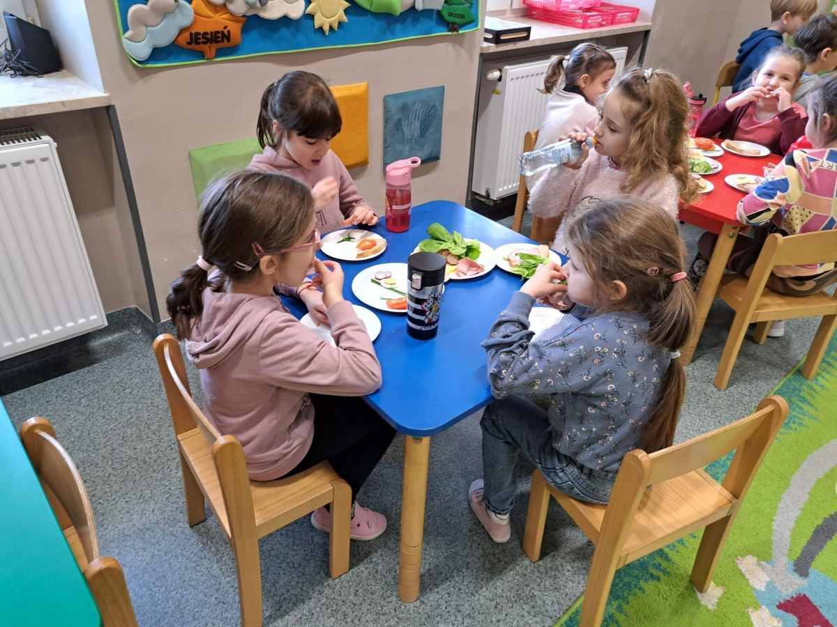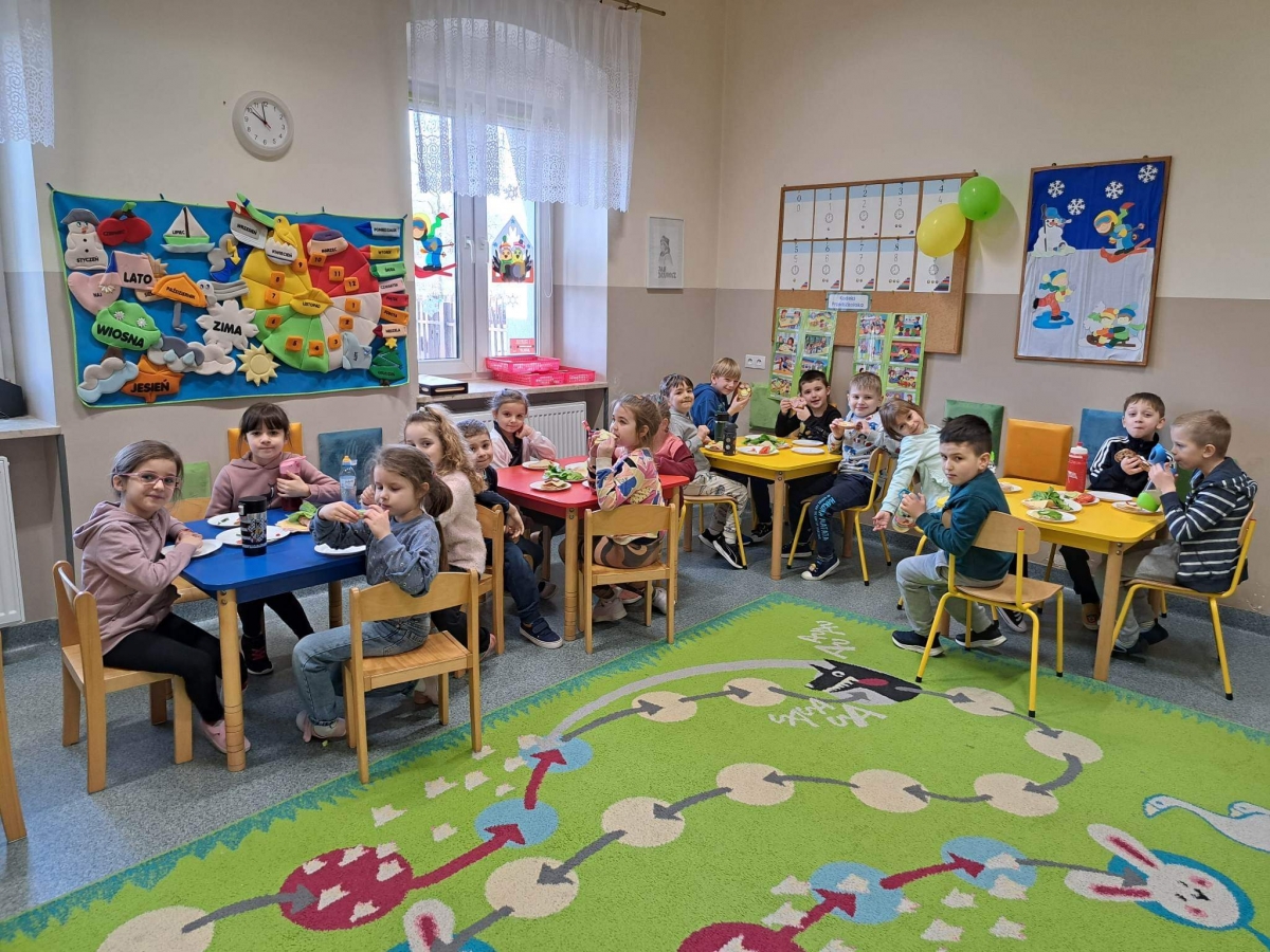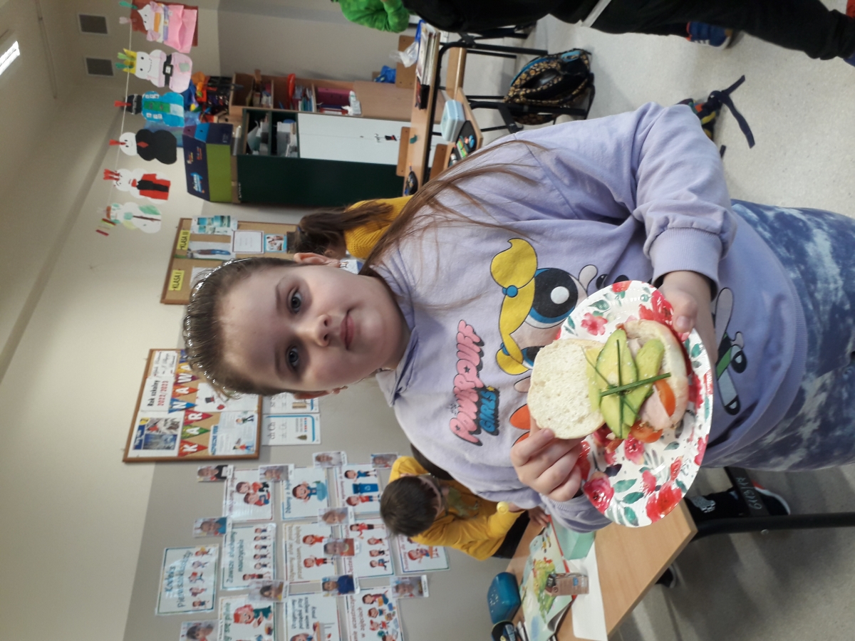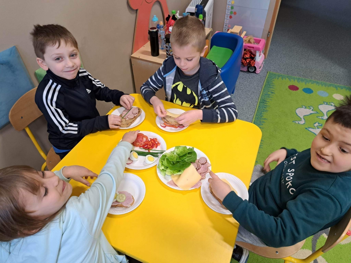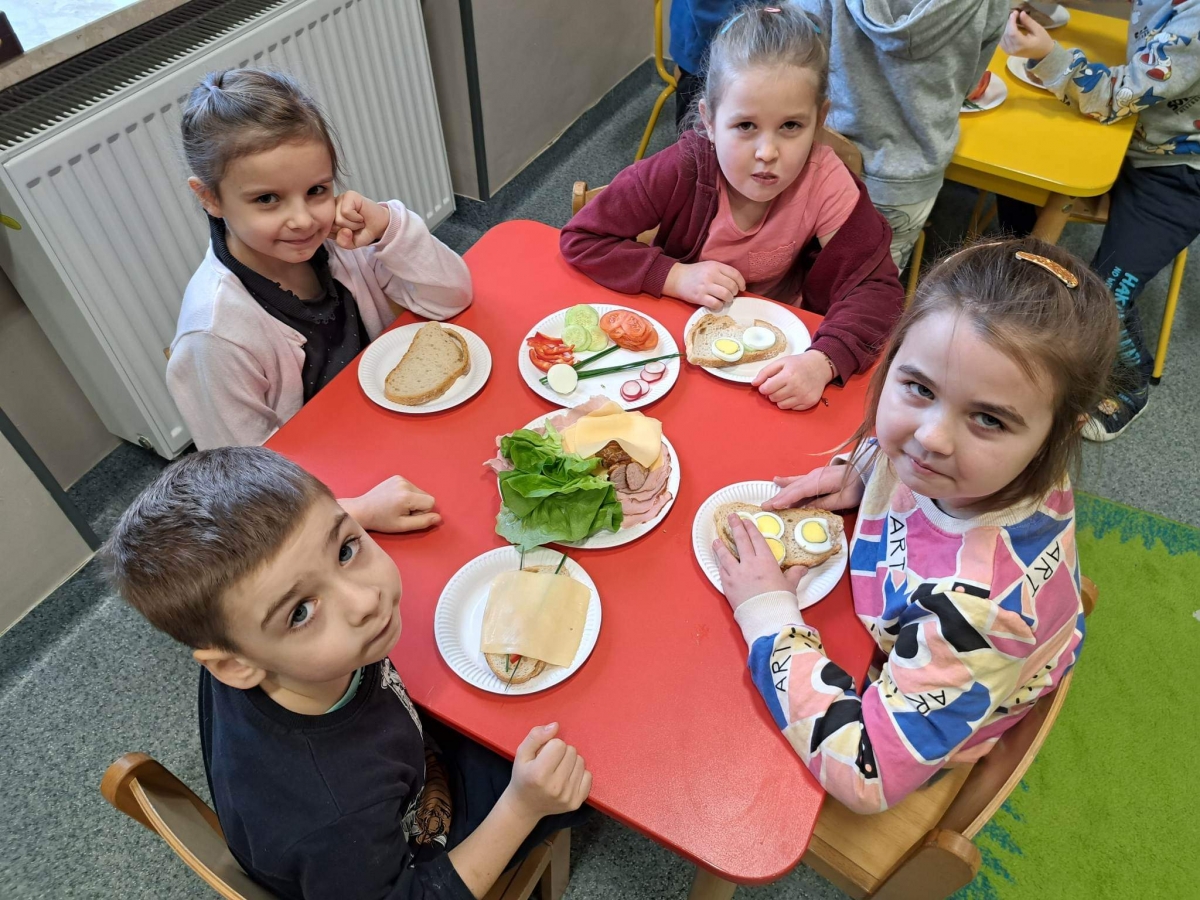 W lutym w naszej szkole obchodziliśmy Dzień Zdrowego Śniadania. Tego dnia dzieci przyniosły do szkoły wszystko to, co jest niezbędne, aby przygotować zdrowe śniadanie tzn. świeże warzywa i owoce, masło, sery, szynkę, ciemne pieczywo. Pamiętając o higienie i bezpieczeństwie, uczniowie pod opieką wychowawców przygotowali swoje drugie śniadanie. Były to zdrowe, kolorowe i apetyczne kanapki. Następnie uczniowie przystąpili do wspólnej degustacji przygotowanych przez siebie śniadań. Zrobione własnoręcznie, smakowały wyjątkowo.